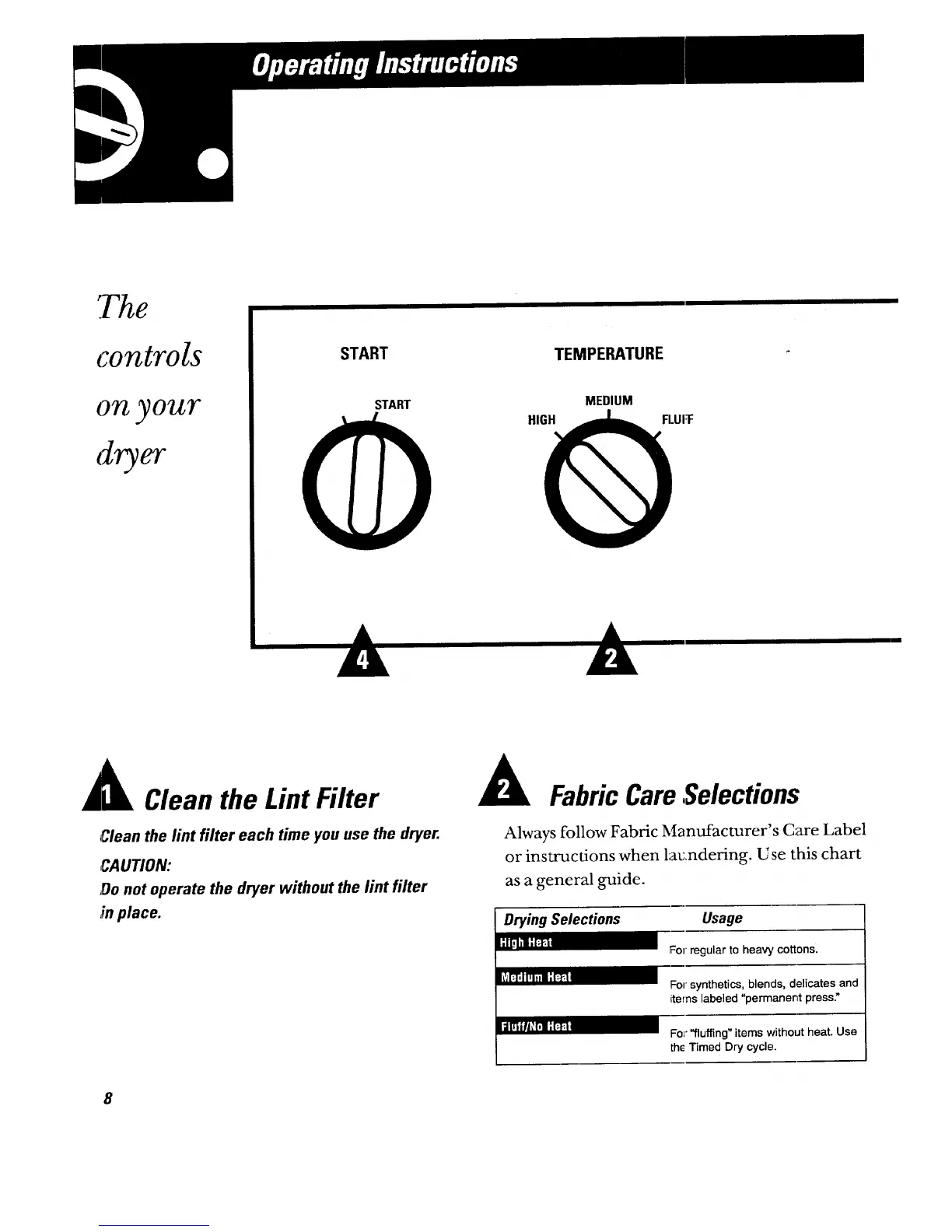 ,Donot operate the dryer without the lint filter