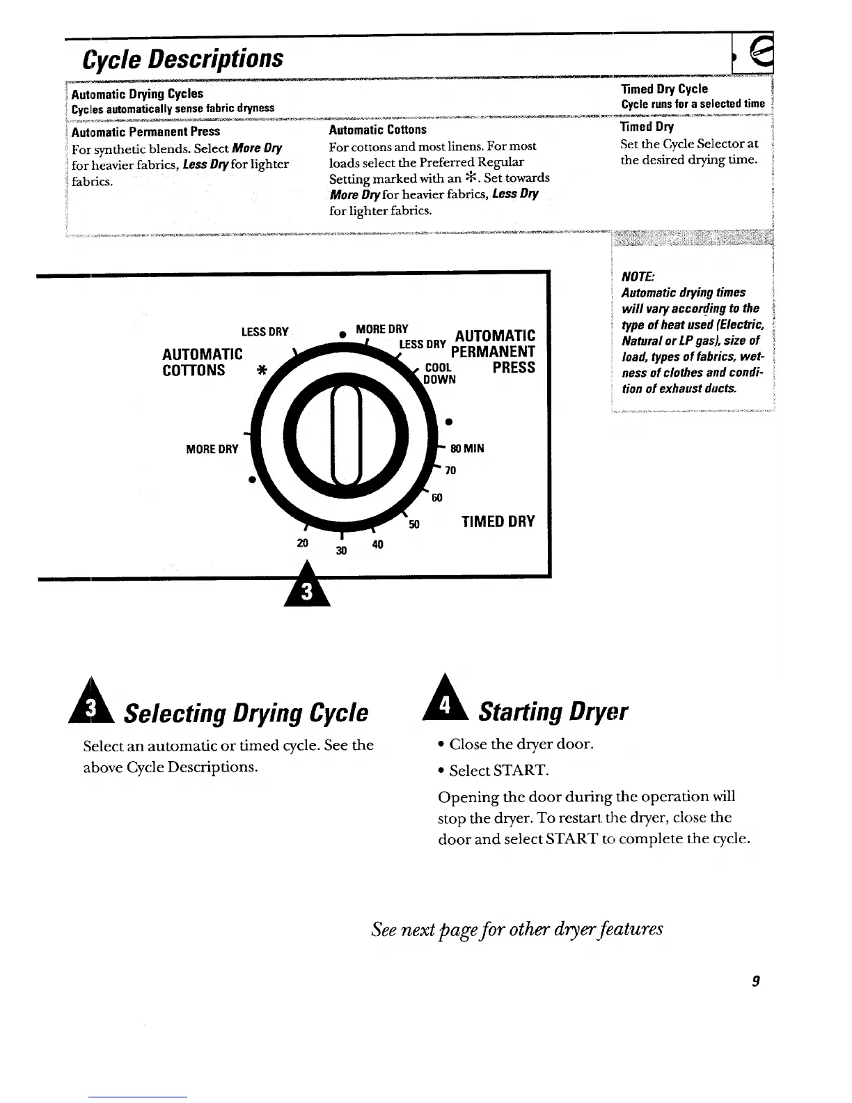 See next page for other dryer _atures