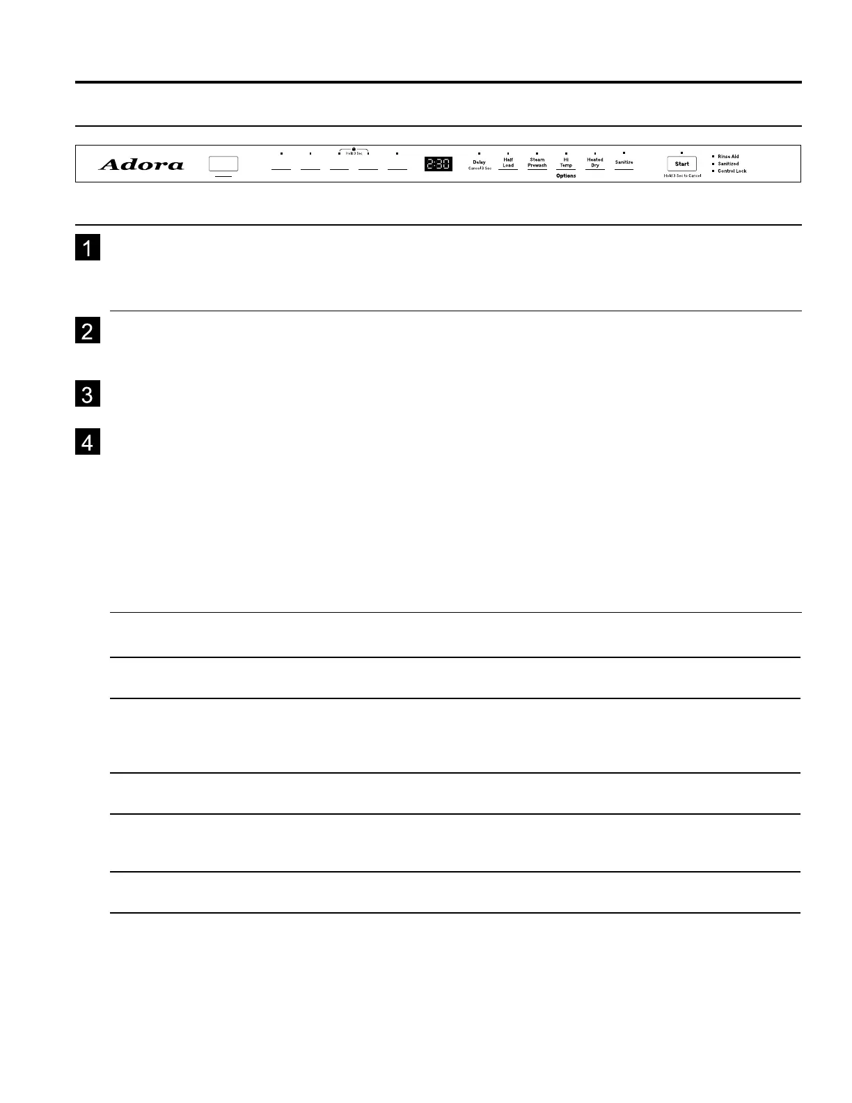Rinse Forrinsingpartialloadsthatwillbewashedlater.Do not use detergent.Detergentisnot