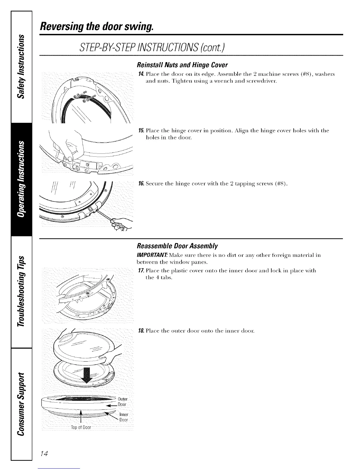 14. Place tile door on its edge. Assemble tile 2 machine screws (#8), washers
