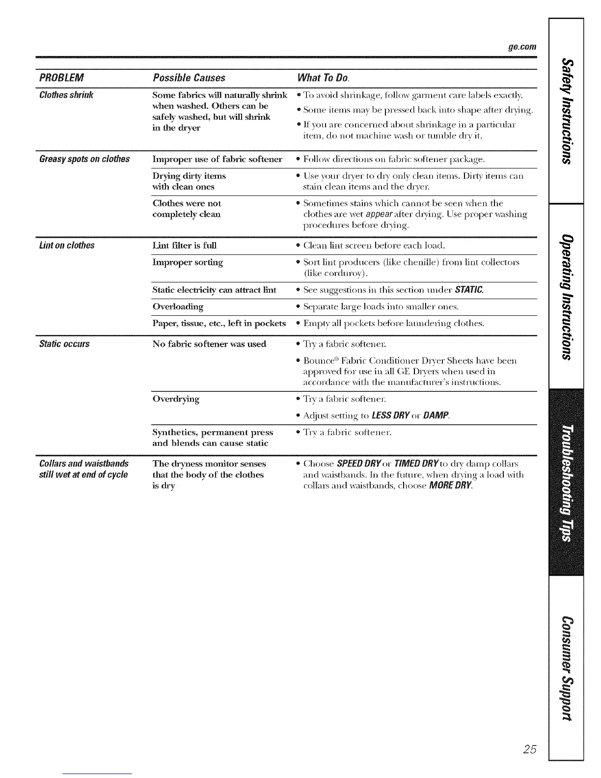 Oreasyspots on clothes Improper use of fabric softener * Follo,_ directions on fid)*_icsoftener l)ackage, .