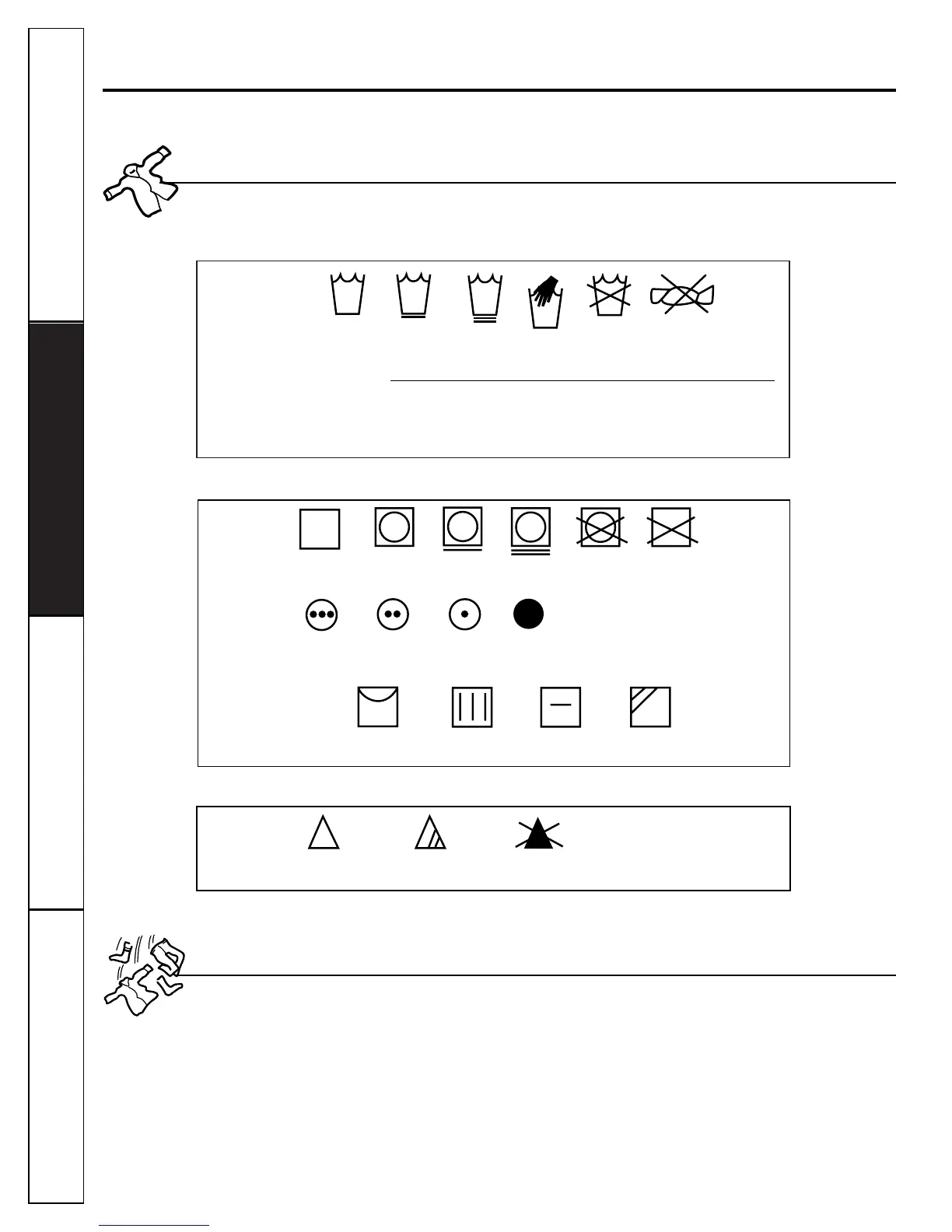 Below are fabric care label “symbols” that affect the clothing you will be laundering.