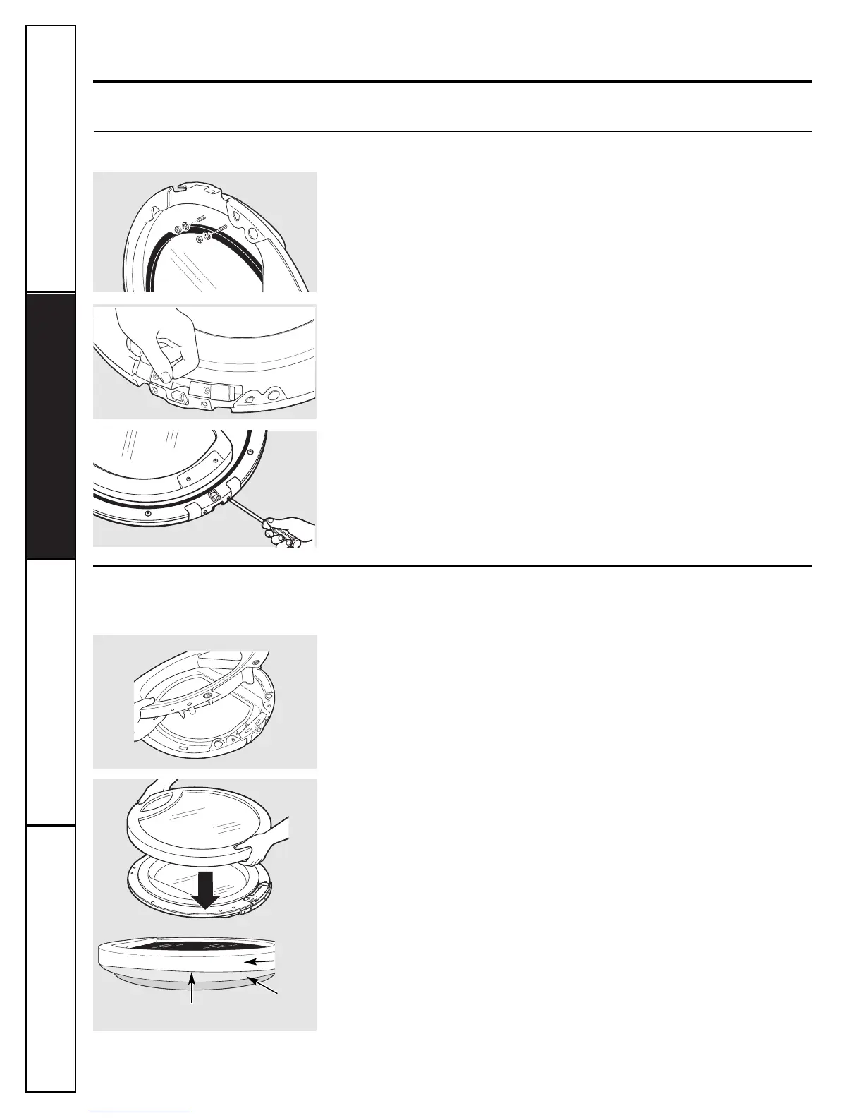 16. Asegure la cubierta de bisagra con los 2 tornillos roscadores (#8).