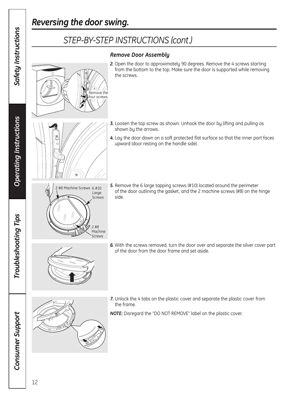 2. Open the door to approximately 90 degrees. Remove the 4 screws starting