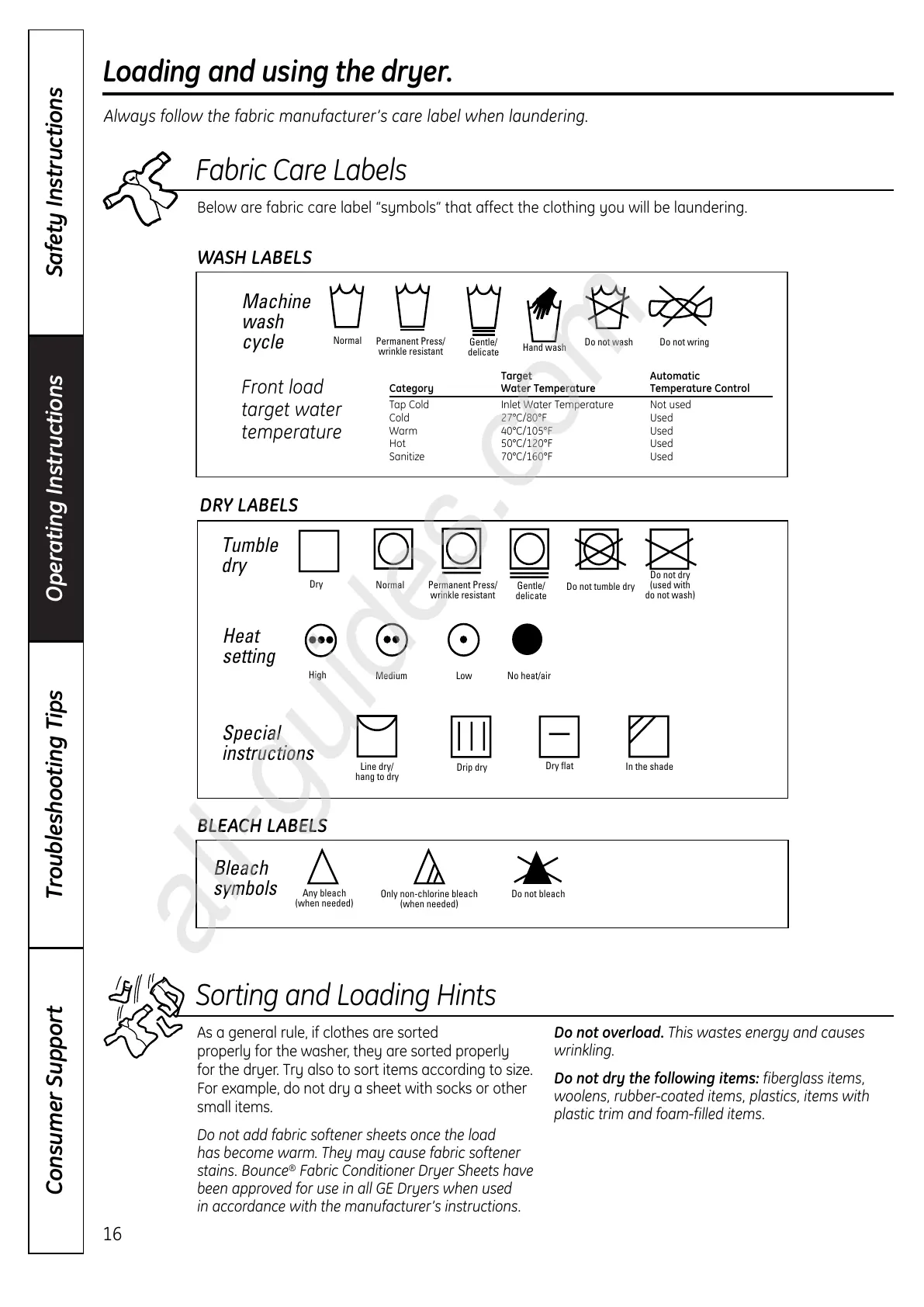 For example, do not dry a sheet with socks or other