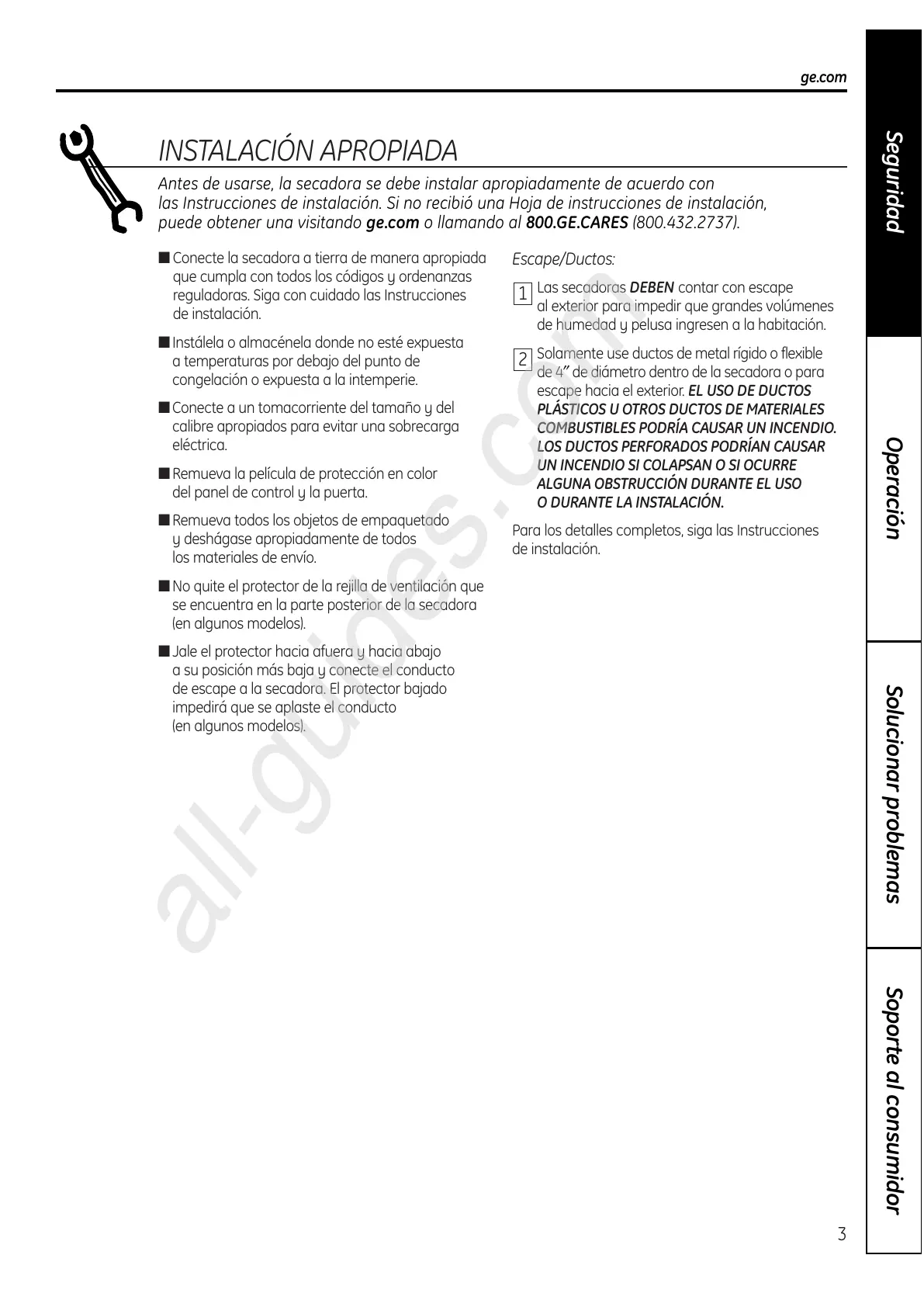puede obtener una visitando ge.com o llamando al 800.GE.CARES (800.432.2737).