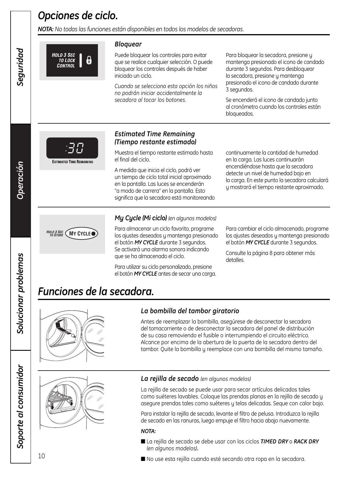 NOTA: No todas las funciones están disponibles en todos los modelos de secadoras.