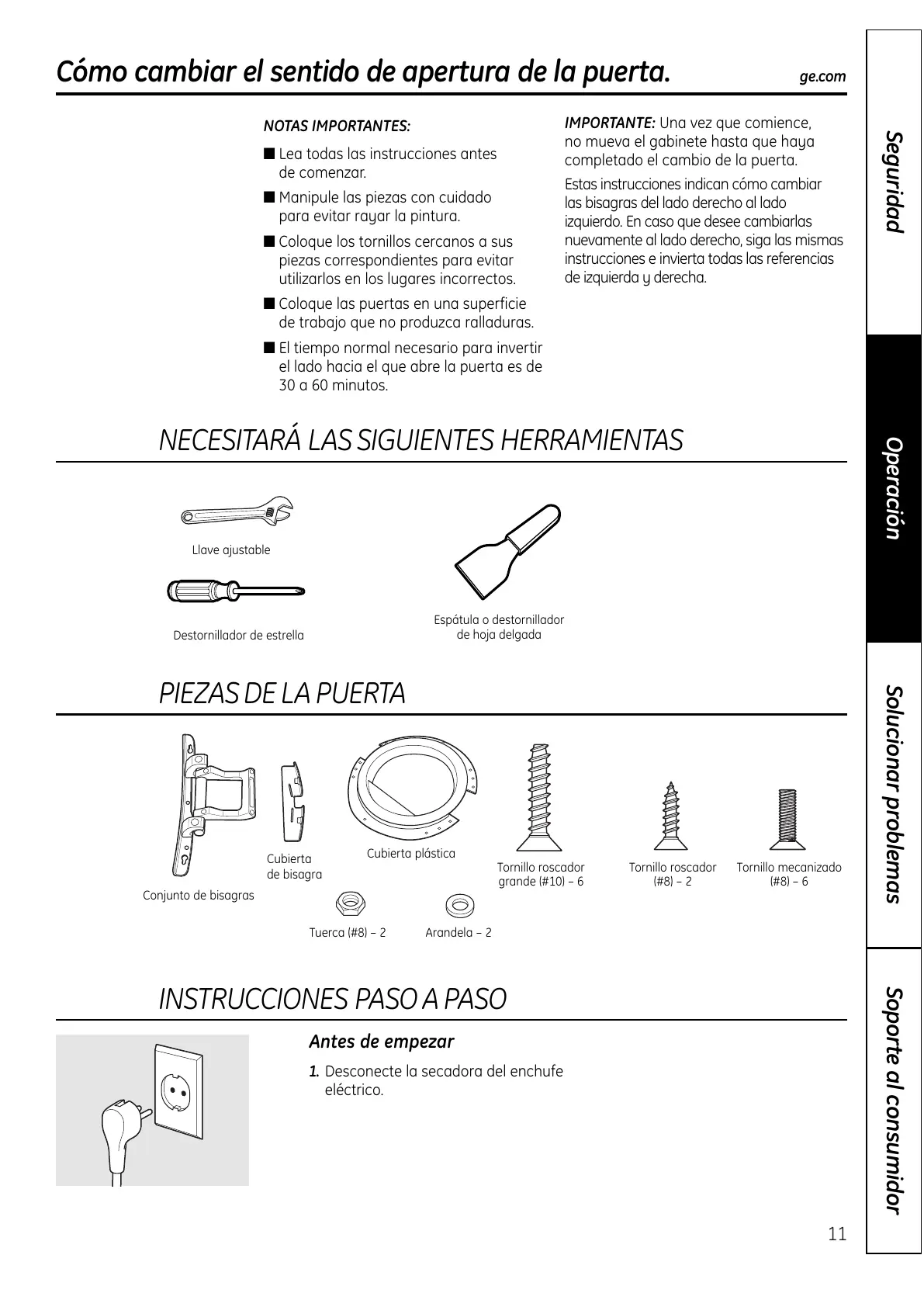 1. Desconecte la secadora del enchufe