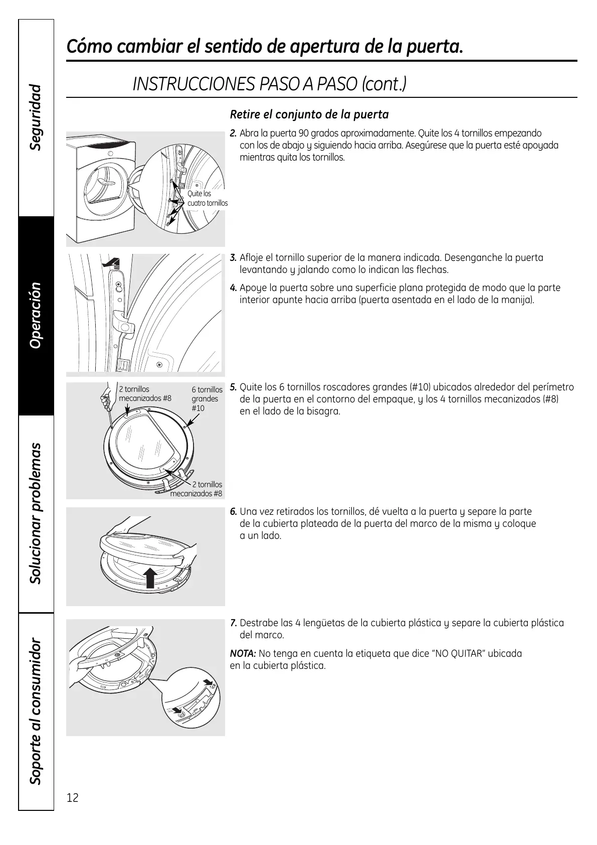 2. Abra la puerta 90 grados aproximadamente. Quite los 4 tornillos empezando