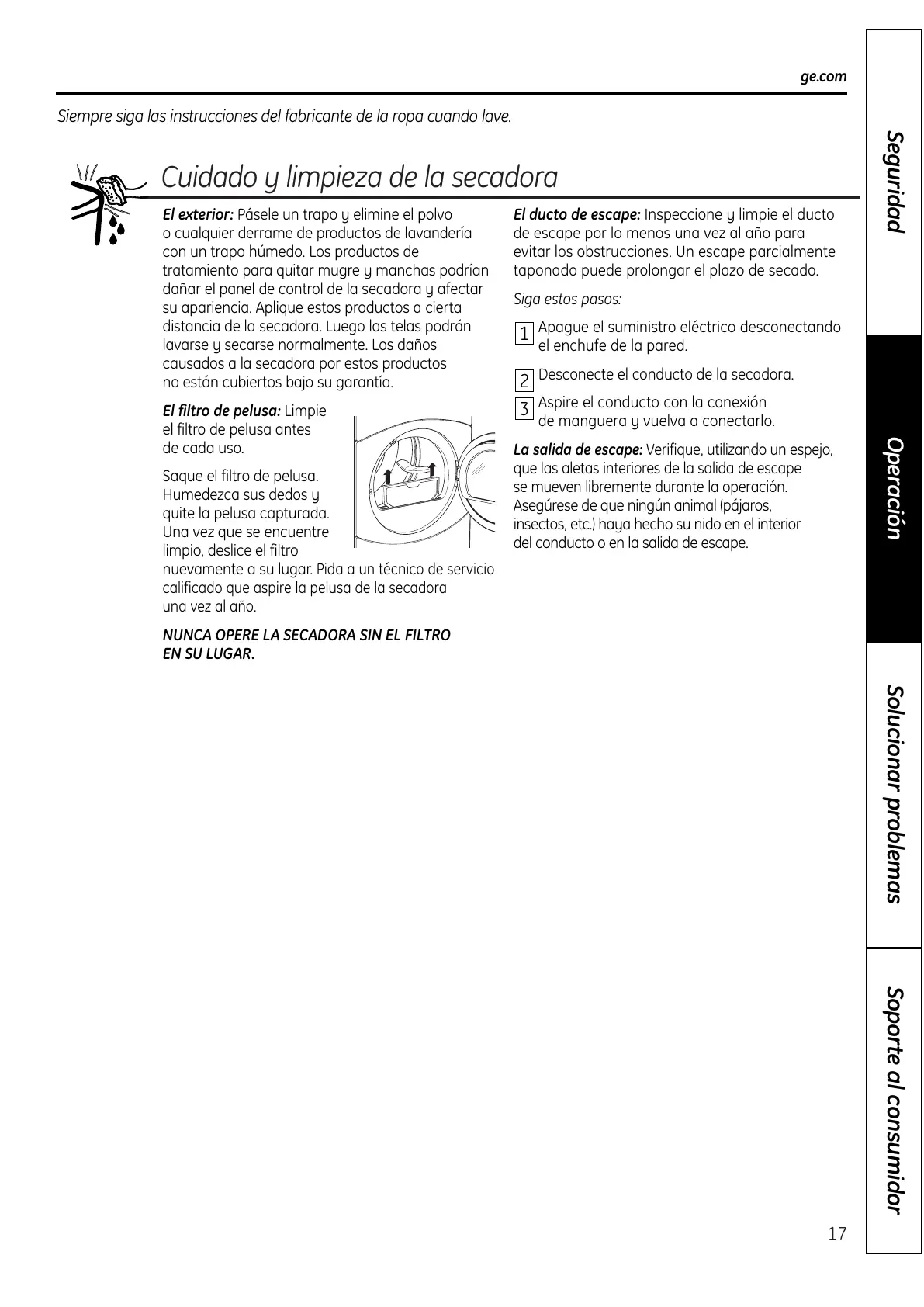 NUNCA OPERE LA SECADORA SIN EL FILTRO