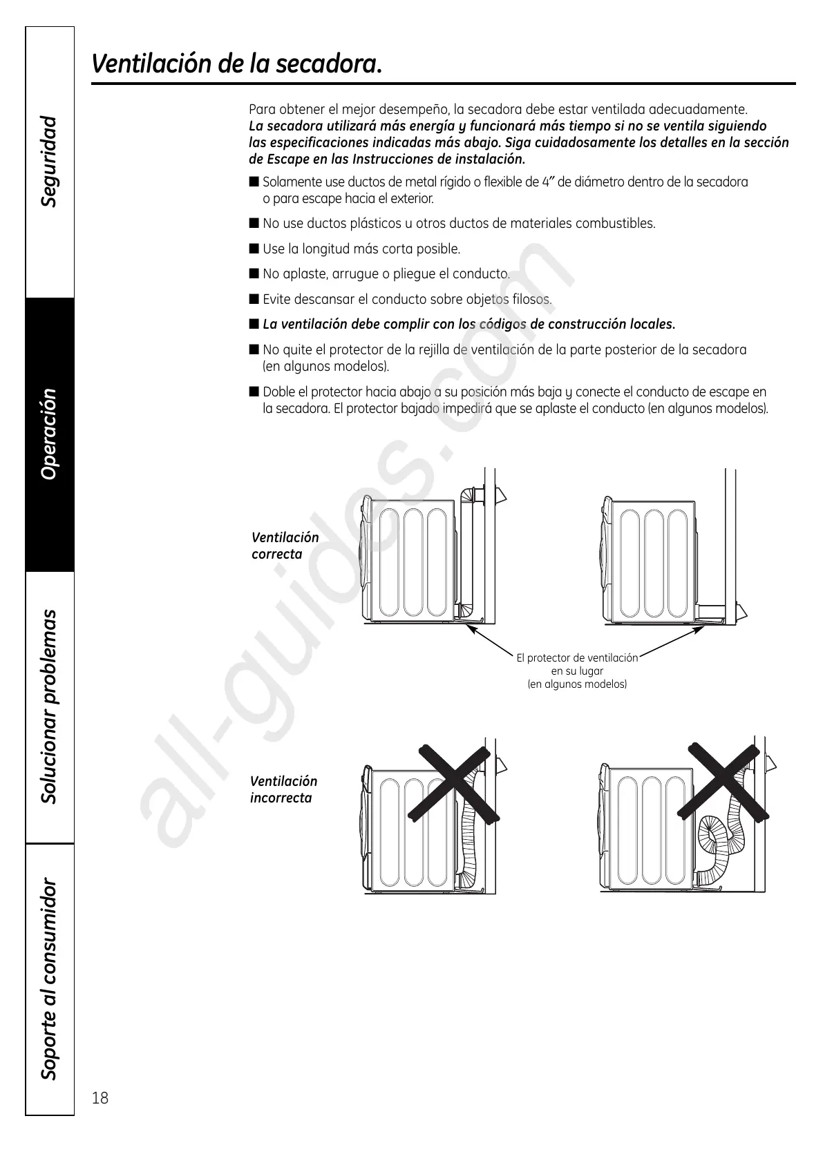 Para obtener el mejor desempeño, la secadora debe estar ventilada adecuadamente.
