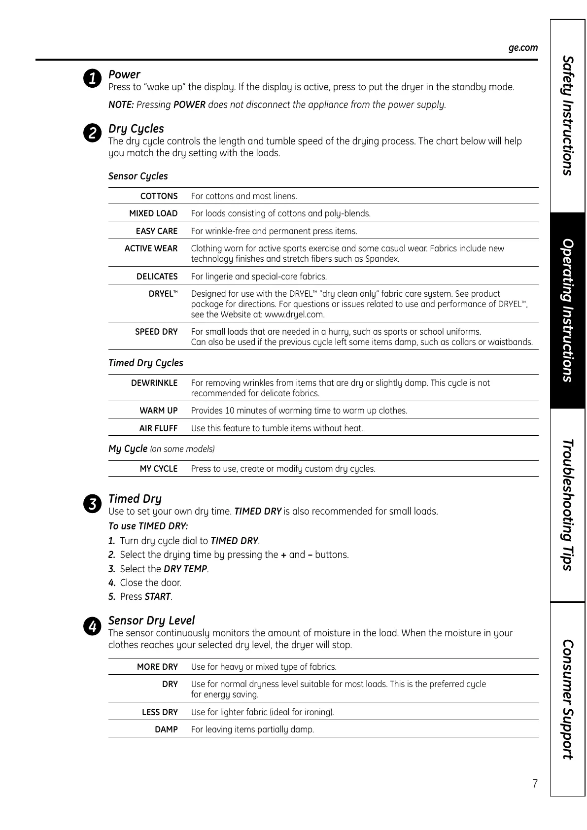 Use to set your own dry time. TIMED DRY is also recommended for small loads.