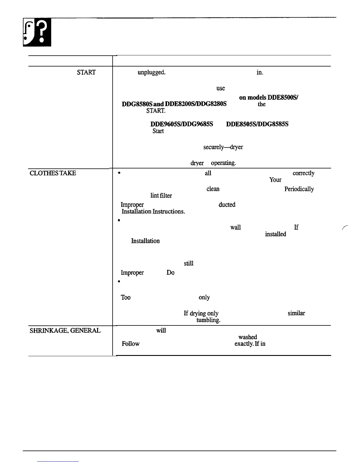 No power to dryer. Check fuses and circuit breakers to make sure dryer is