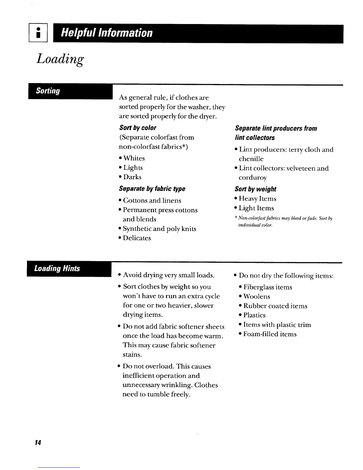 are sorted properly for the dryer.