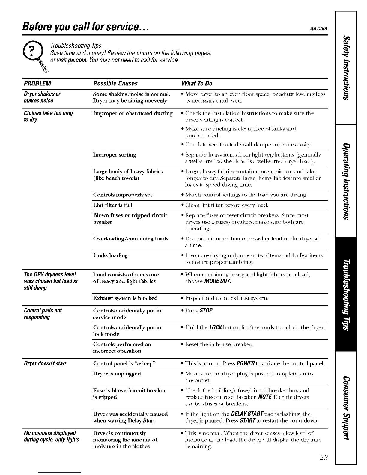 Dryer shakes or Some shaldng/noise is normal. * Mo_e dr_er to an even floor space, or a(!iust lmeling legs