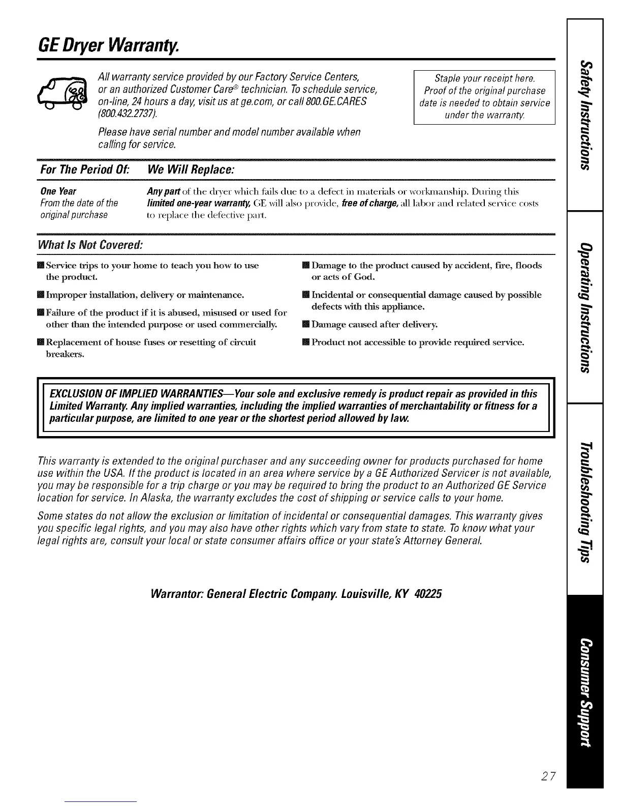 GEDryer Warranty.