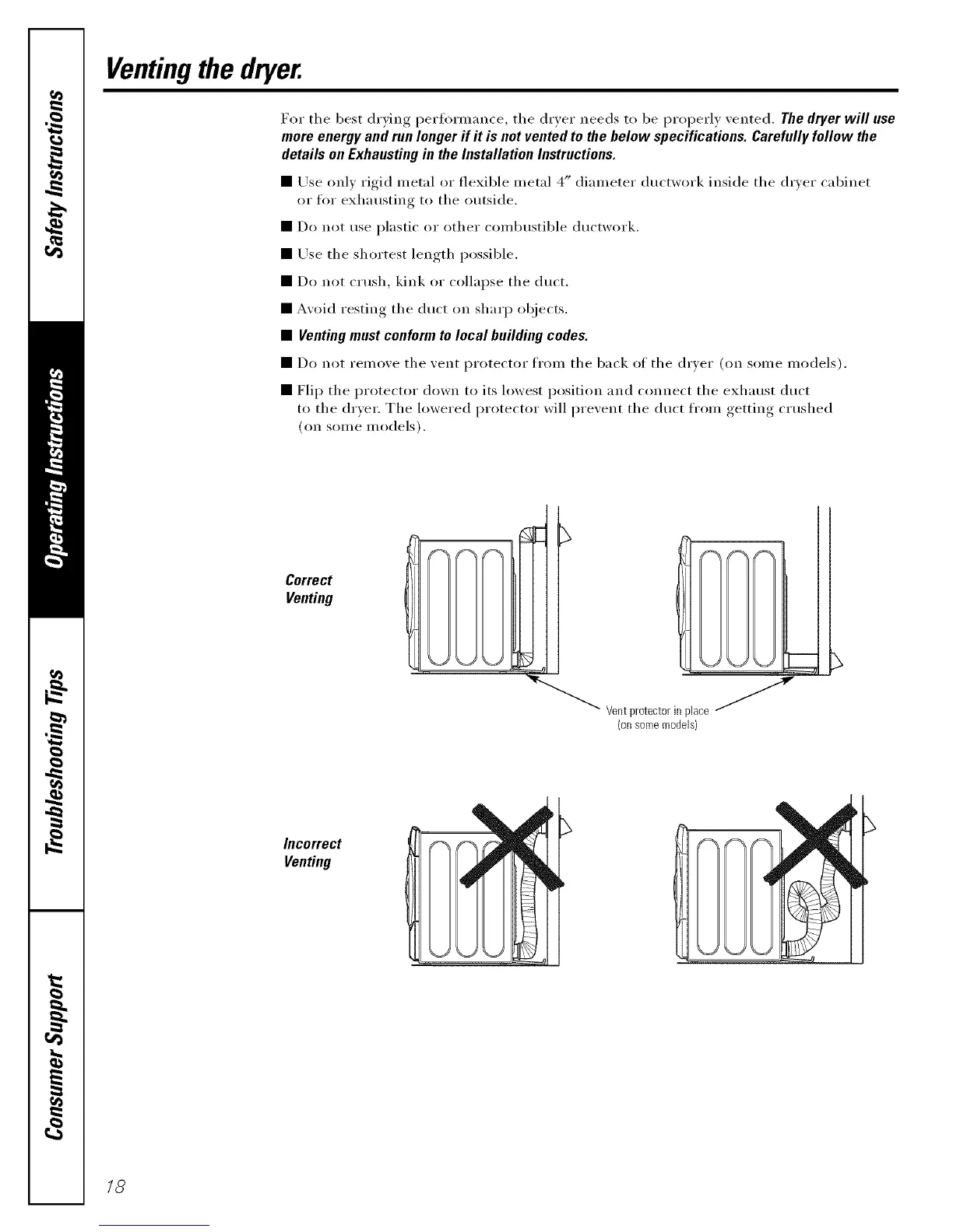 Do not remove the vent protector from the back oI the dryer (on some models).