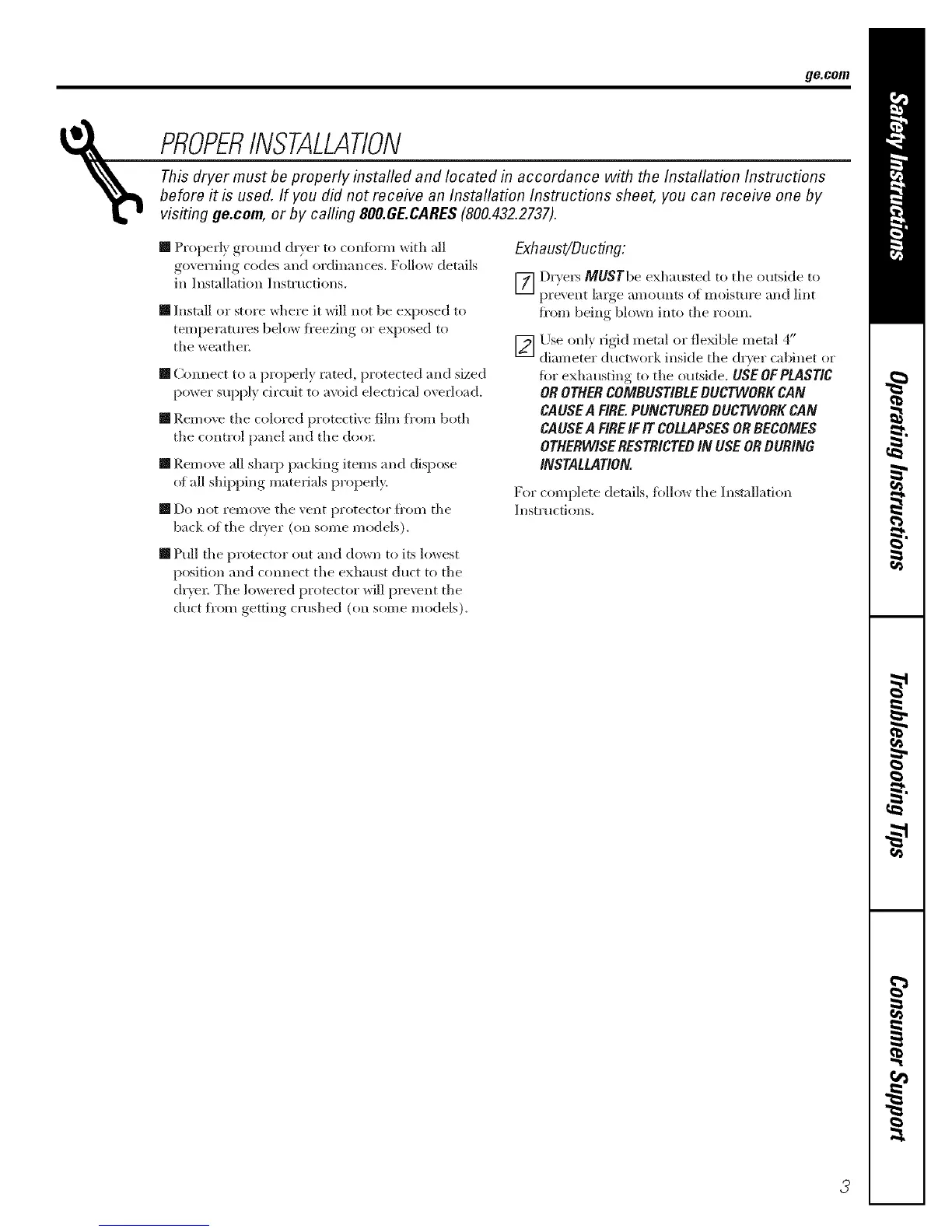 This dryer must be properly installed and located in accordance with the Installation Instructions