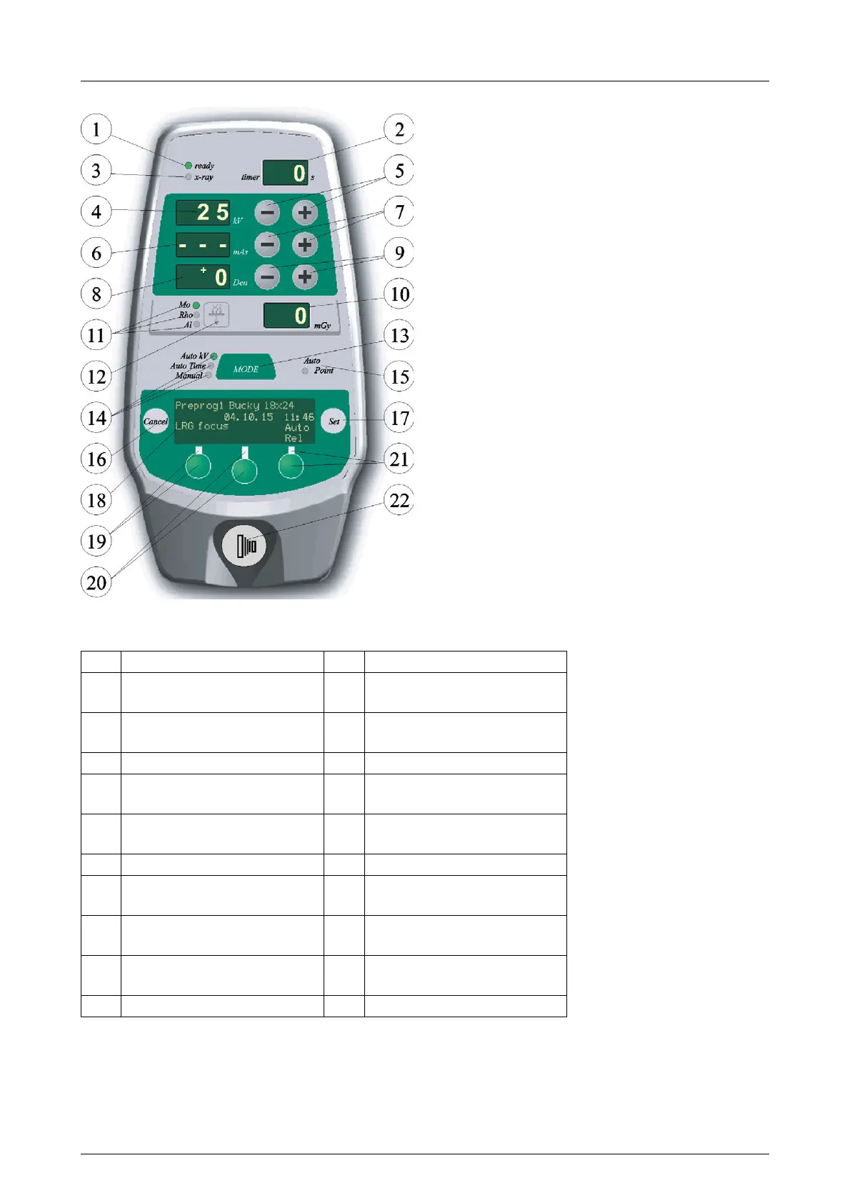 3 Radiation indicator, yellow 14 Phototimer mode indicators,