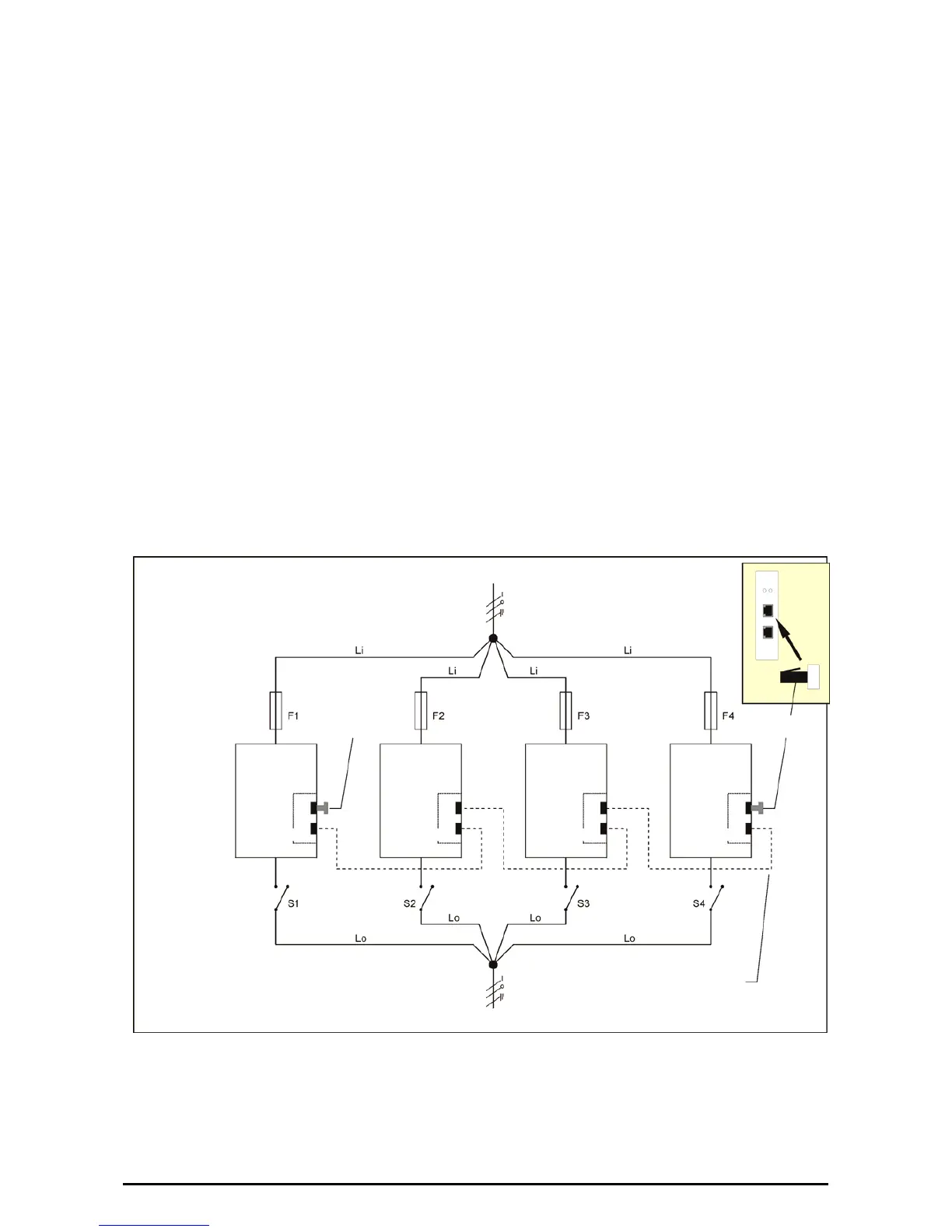 2. All outputs must be connected together, supplying the load. It is advised to install switches (S 1-4,