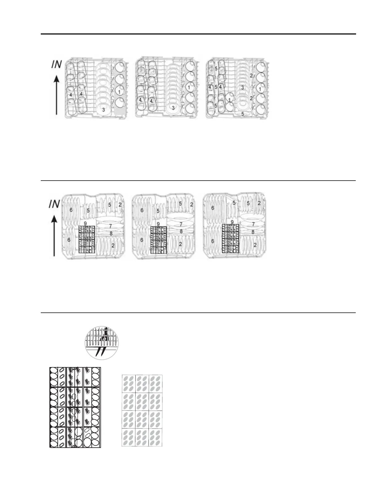Pour un lavage optimal, veuillez suivre les lignes directrices ci-dessous pour le chargement des paniers. Les