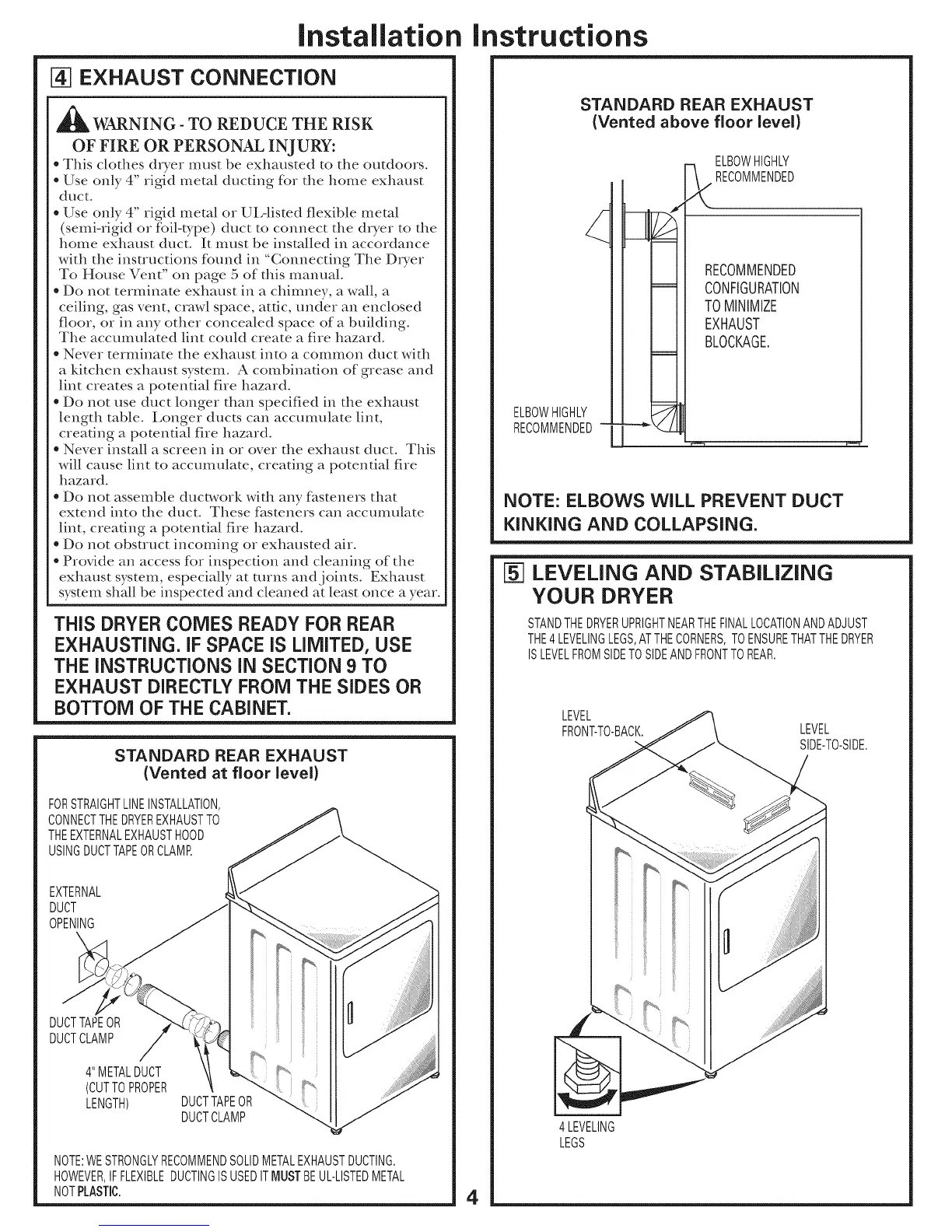 . Use only 4" rigid metal or UI,-listed flexible metal