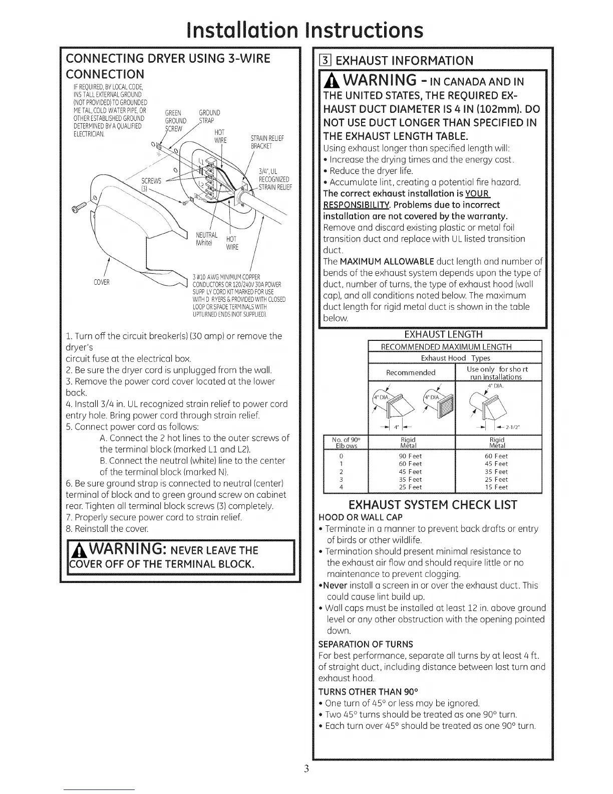 NOT USE DUCT LONGER THAN SPECIFIED IN