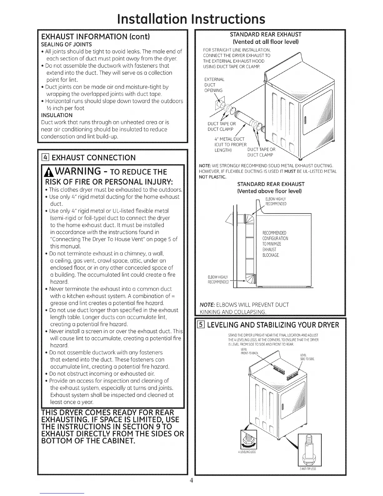 [_ LEVELING AND STABILIZING YOUR DRYER