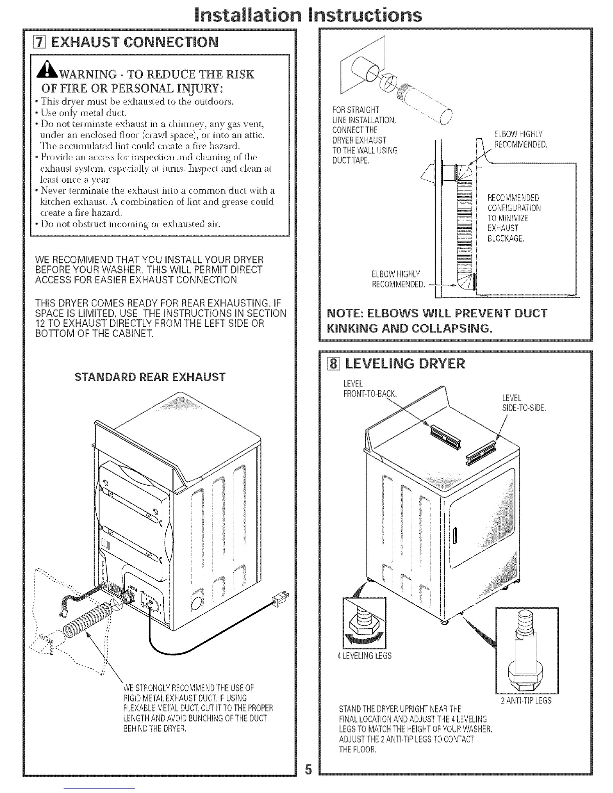 WE RECOMMEND THAT YOU iNSTALL YOUR DRYER
