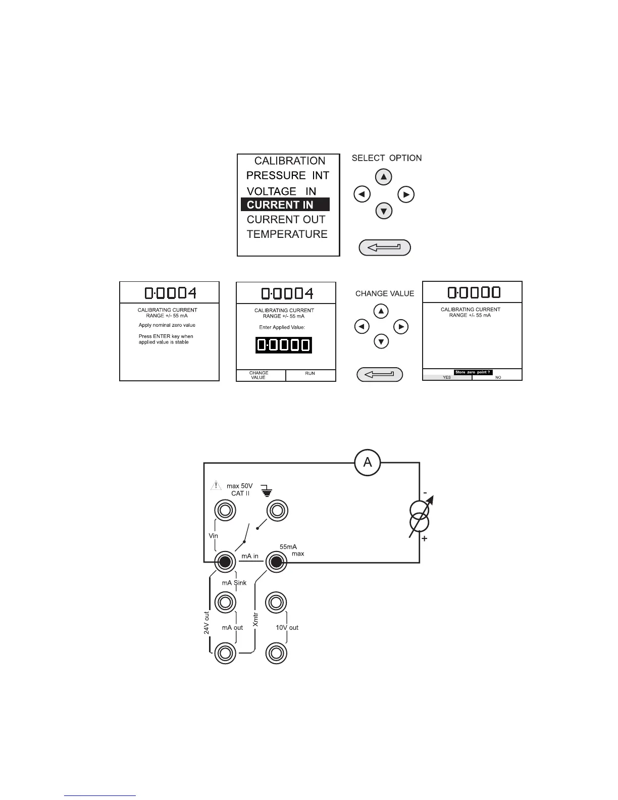 (4) Connect the mA in terminals of the instrument to a variable current source and