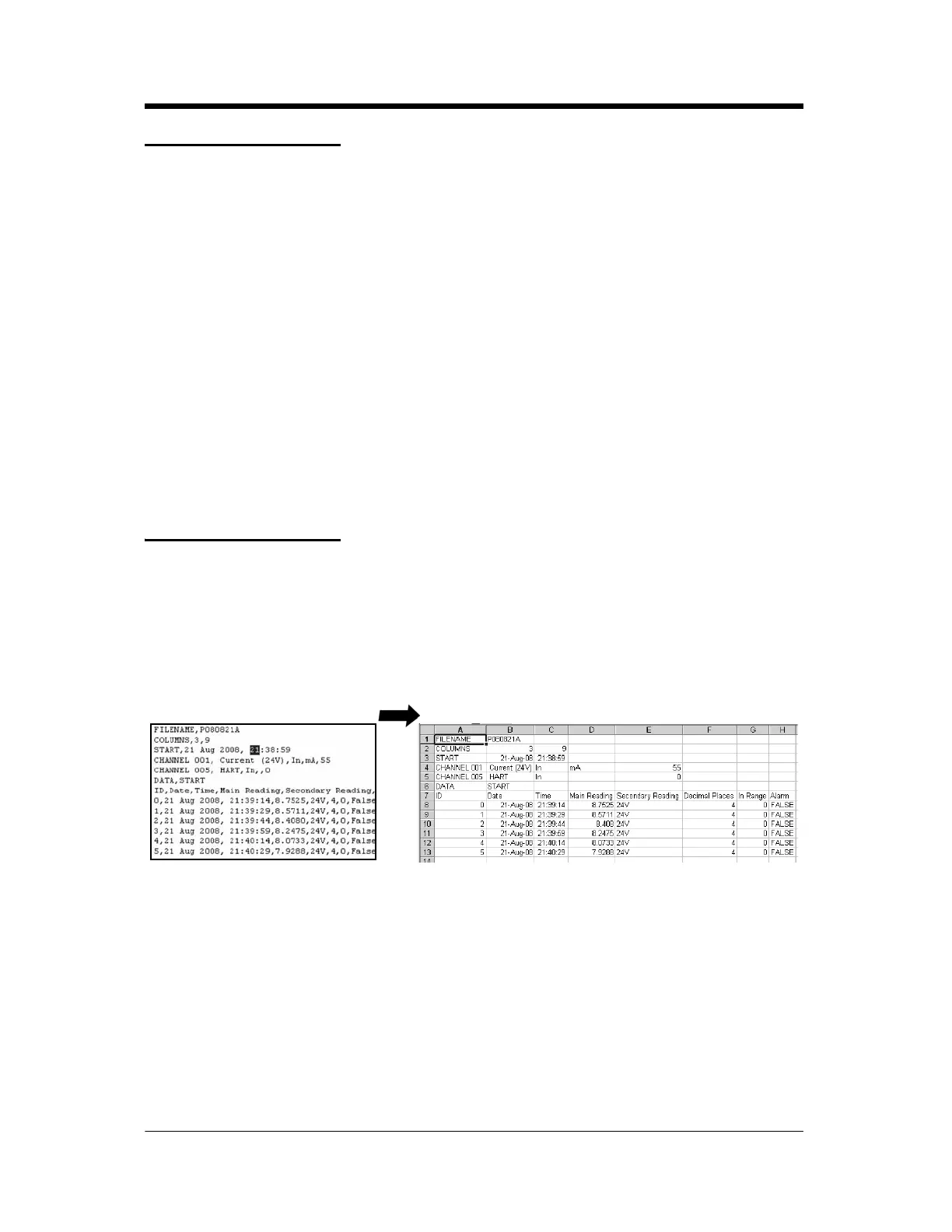 Comma separated file Data imported into a spreadsheet