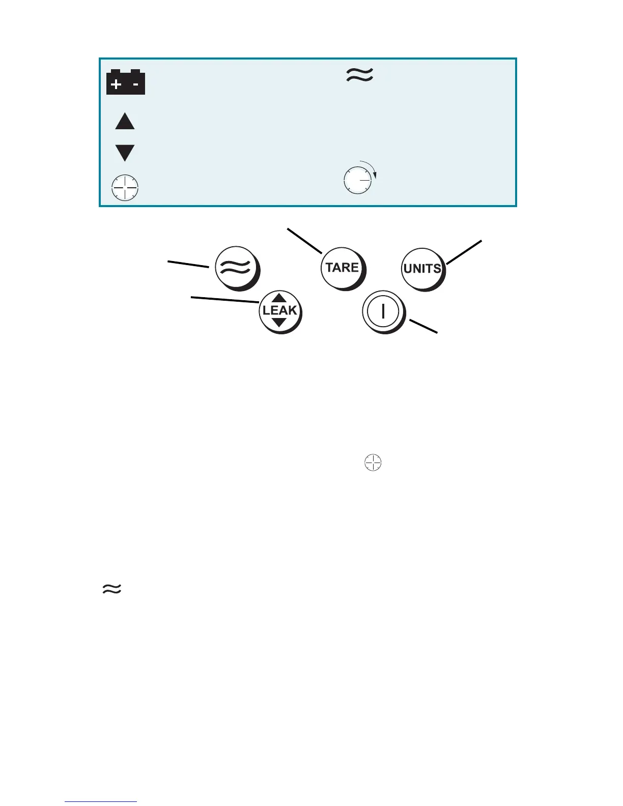 To perform a leak test, press the LEAK key 3 times. The symbol flashes on the