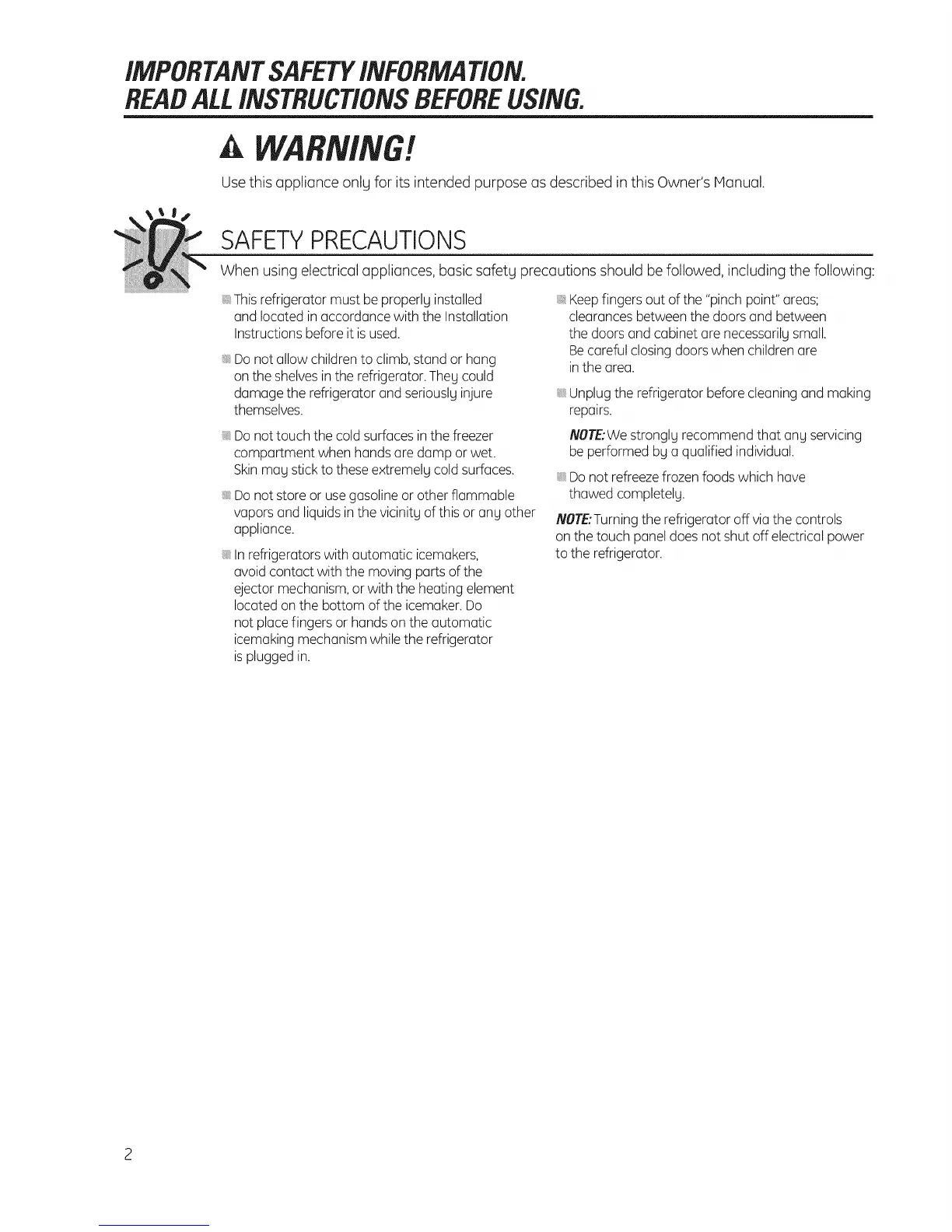 damage the refrigerator and seriouslginjure