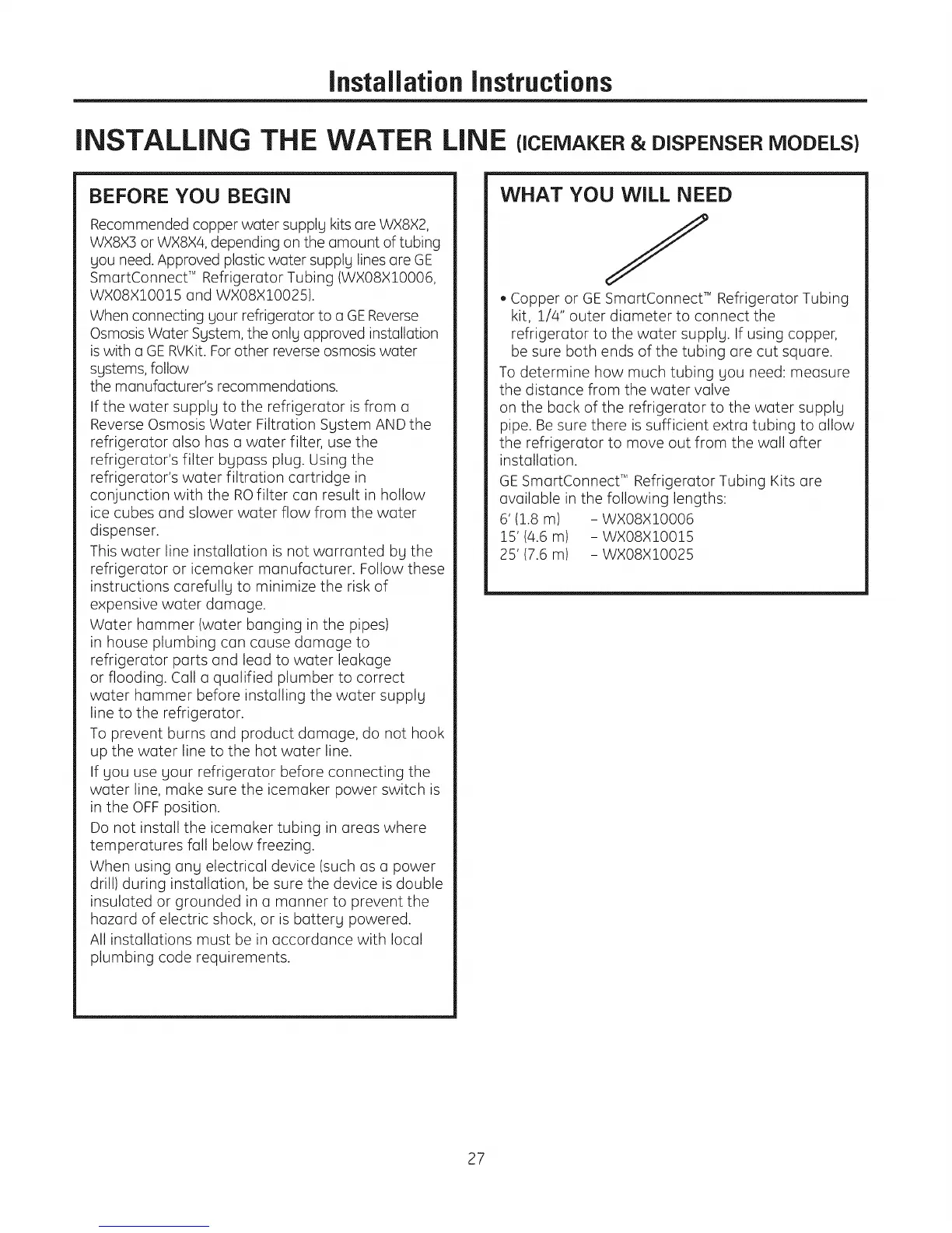 GE Sm(]rtConnect TMRefriger(]tor Tubing Kits (]re