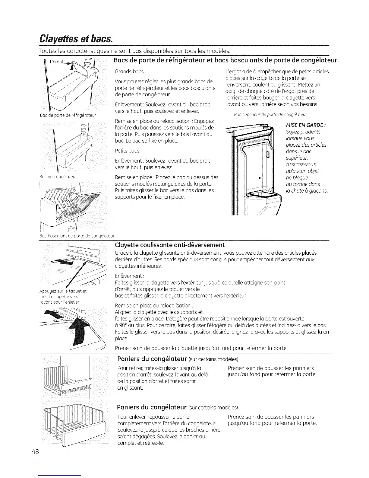 Bacs de porte de r_frig_rateur et bacs basculants de porte de cong_lateur.