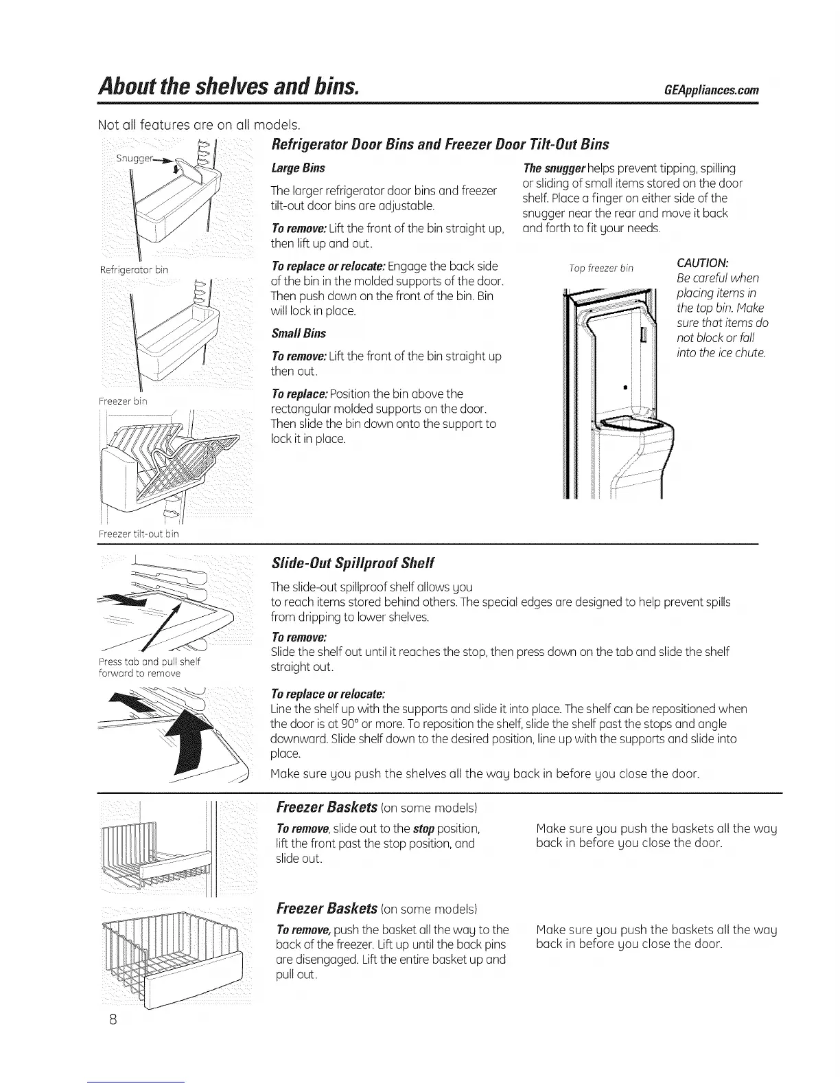 Refrigerator Door Bins and Freezer Door Tilt-Out Bins