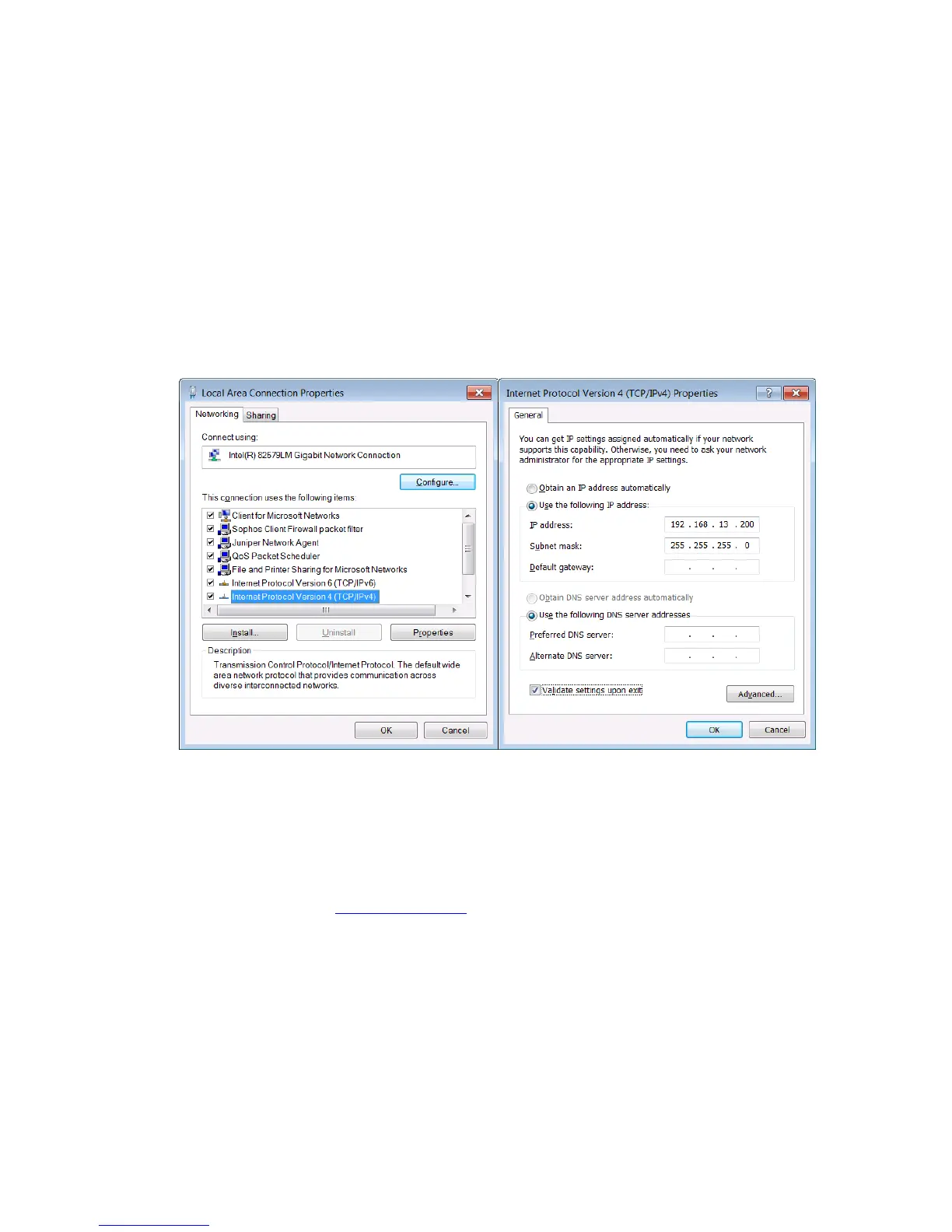 address automatically” and instead assign a static IP address on the same subnet as the