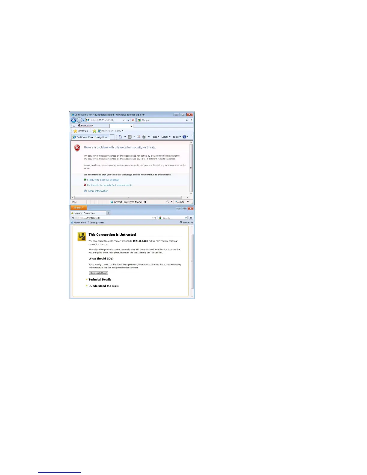 Alert screen from Microsoft Internet Explorer Alert screen from Mozilla Firefox