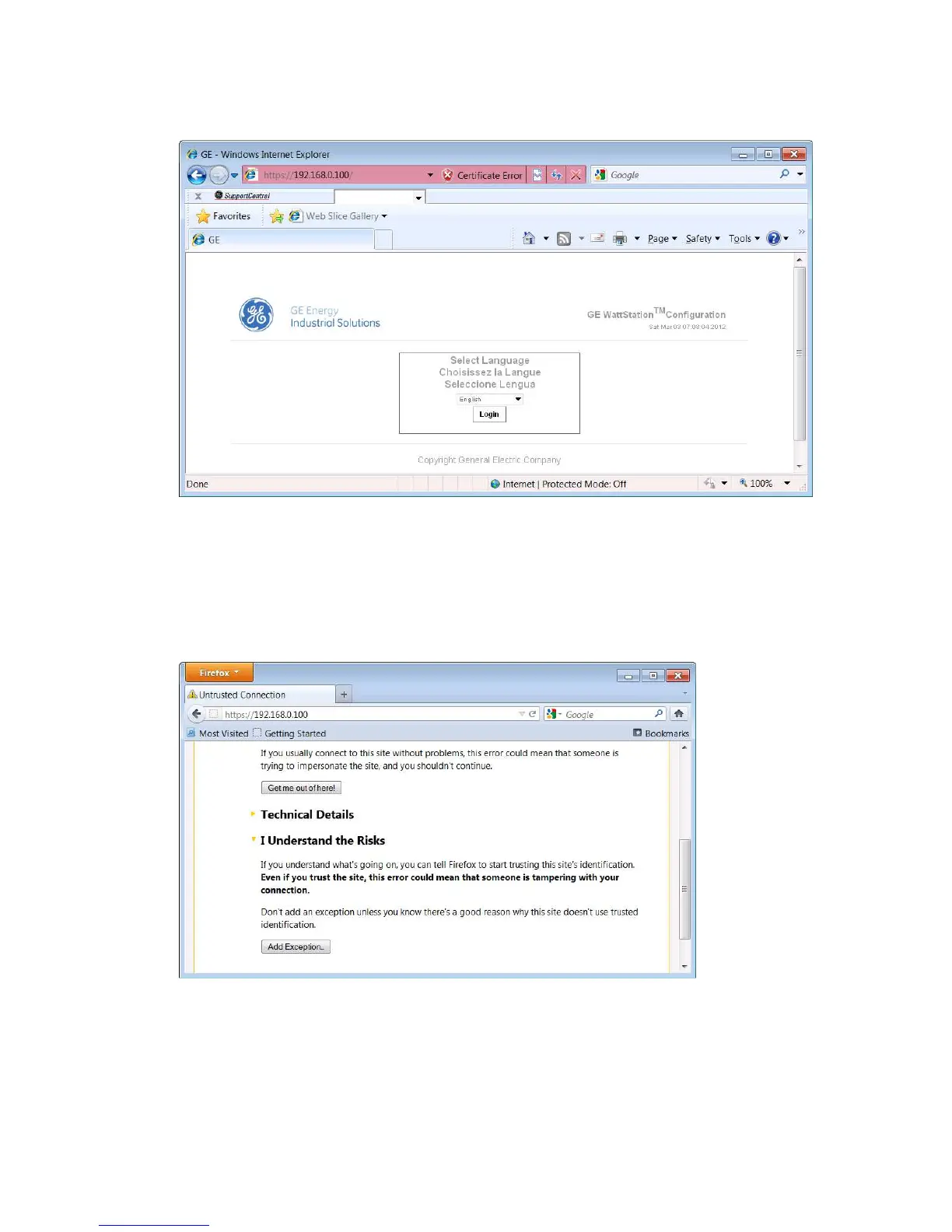 Risks” option in Mozilla Firefox brings up a window allowing you to “Add Exception”.