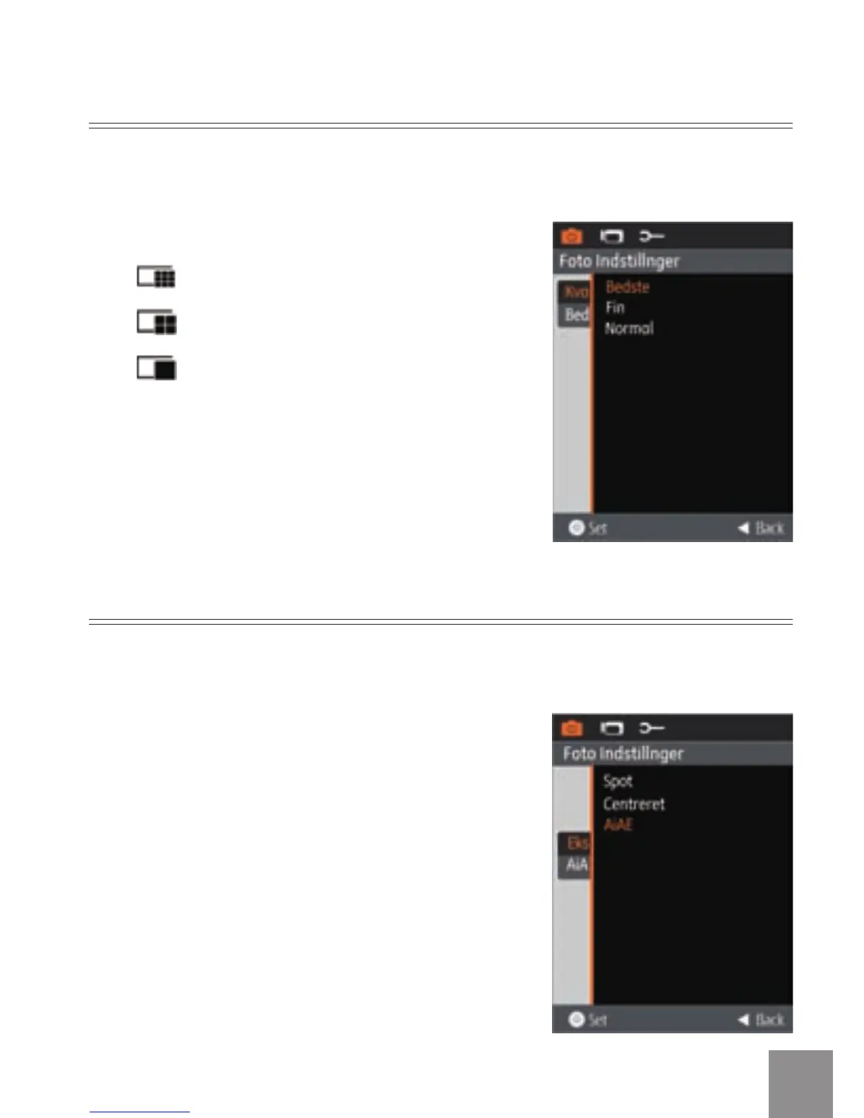 I billedkvalitets-menuen kan du justere billedernes komprimeringsforhold. En