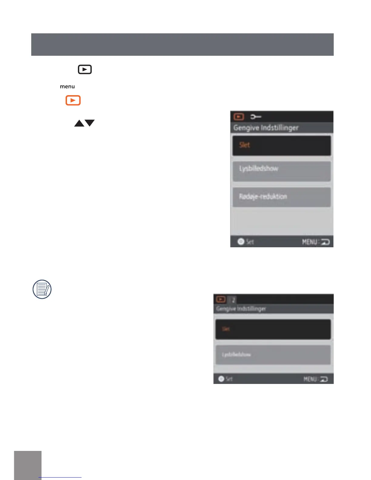 Tryk på menuknappen i gengivefunktion.