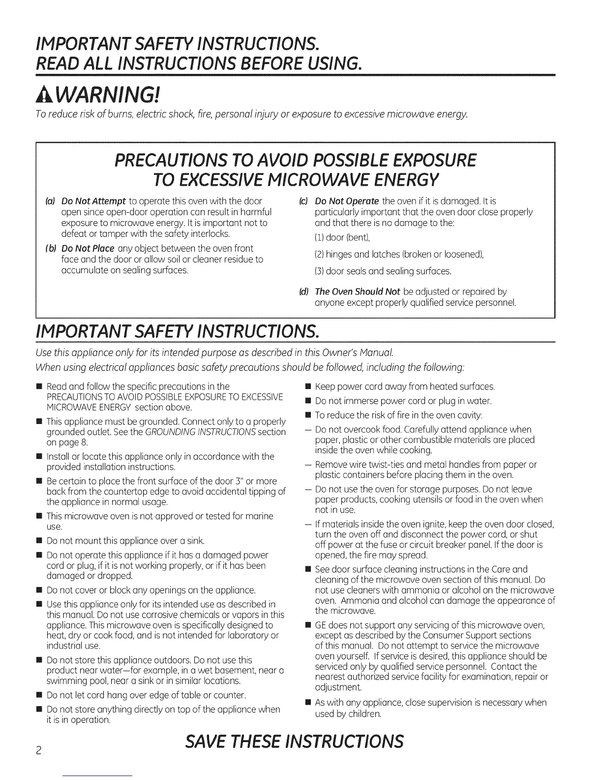 2 SAVE THESE INSTRUCTIONS