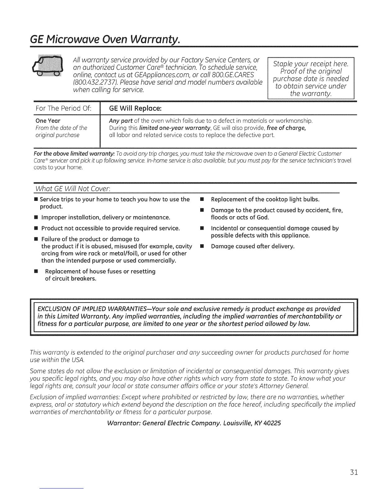 GE Microwave Oven Warranty.