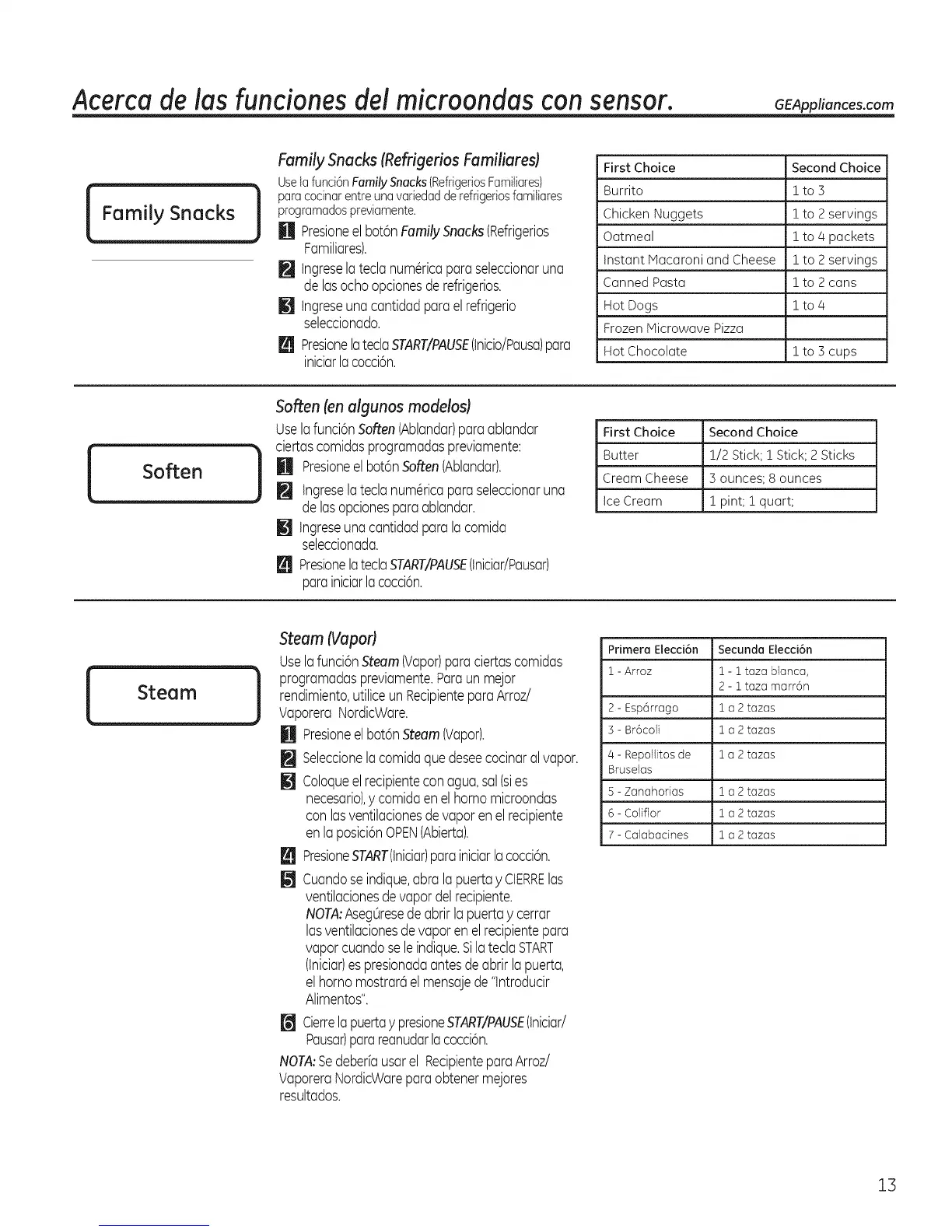 Acerca de las funciones dei microondas con sensor. GEAppliances.com
