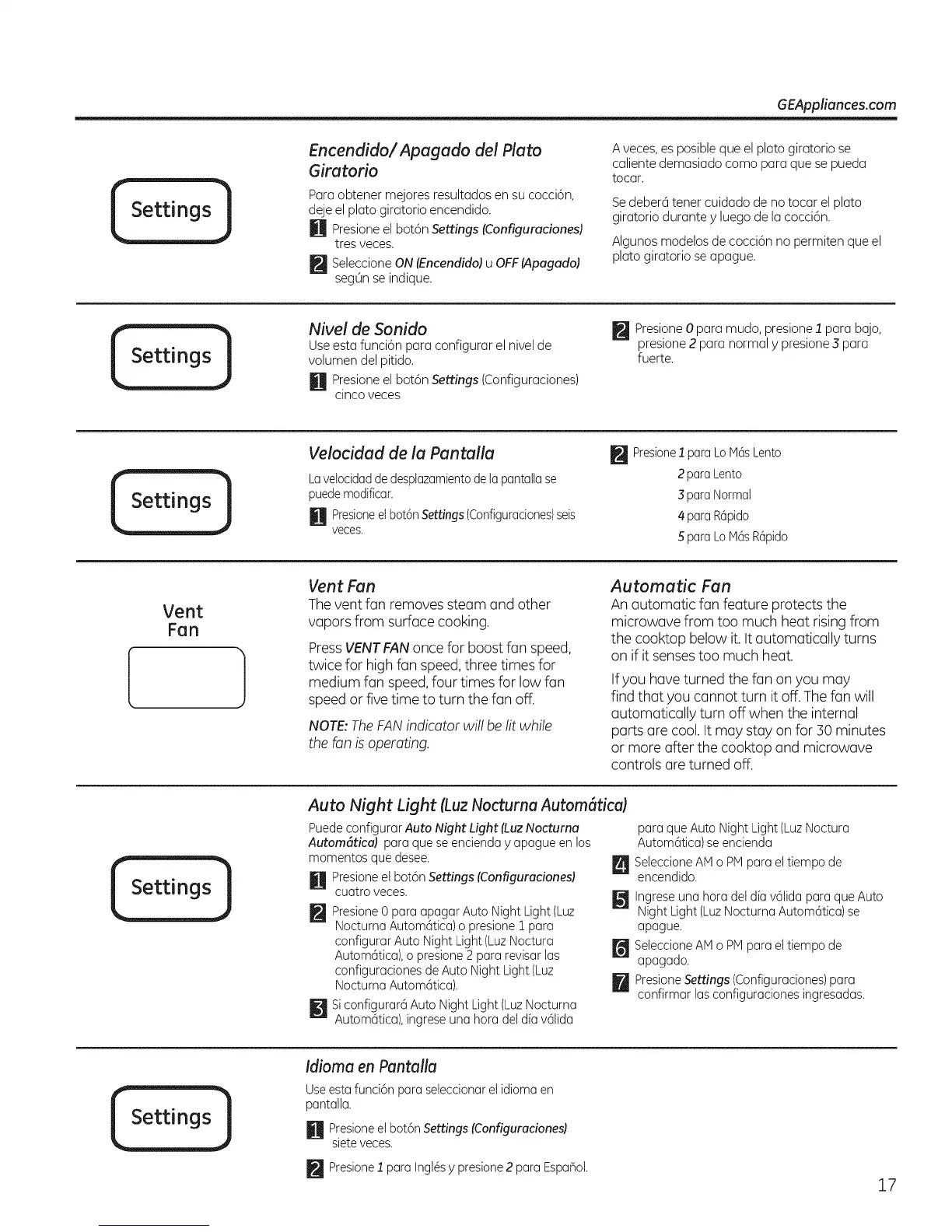 H Presione el bot6n Settings (Configuraciones)