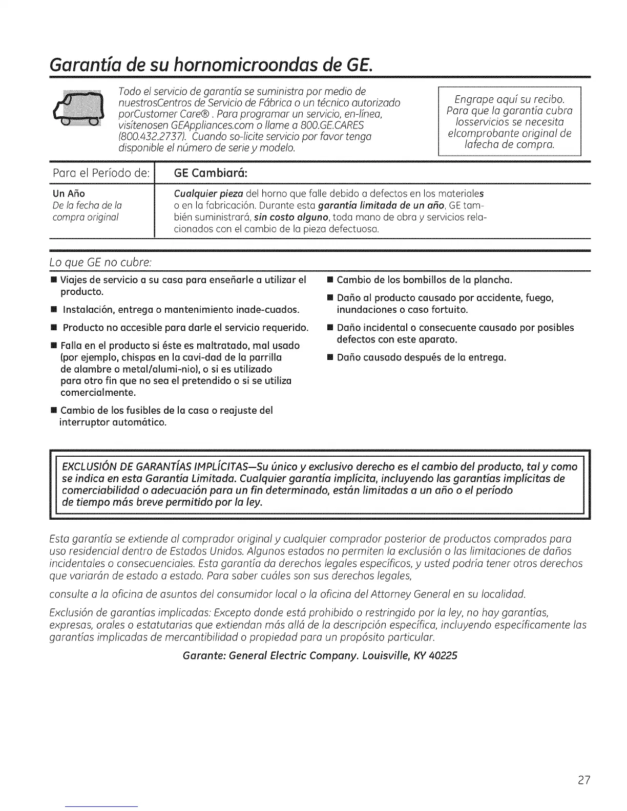 GaranUa de su hornomicroondas de GE.