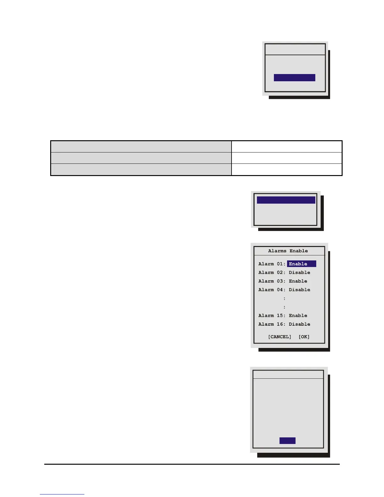 Enable submenu, and enable or disable alarm inputs on