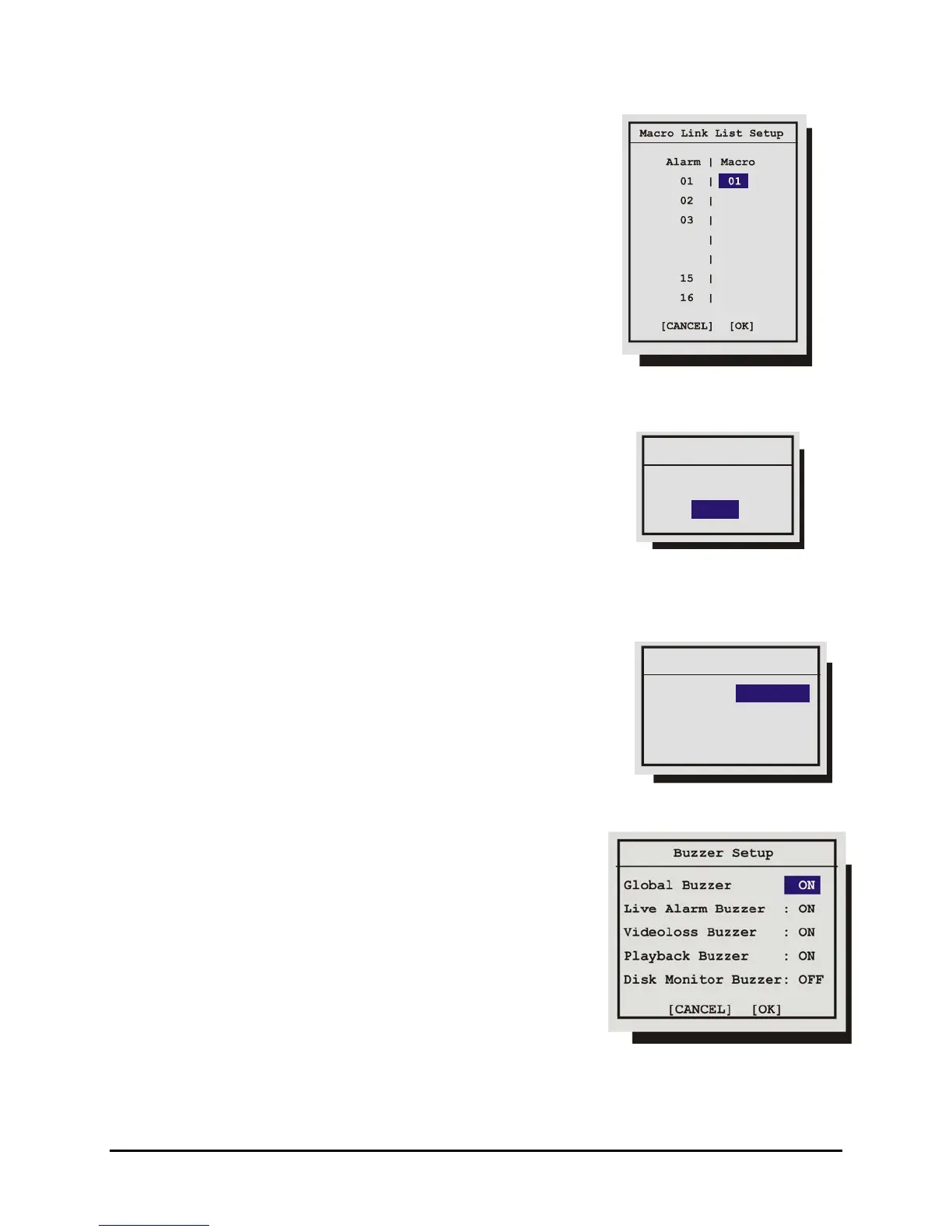 This menu selection is not available on 4-channel DVMRe CT II units, since Fullscreen Alarm Mode is the
