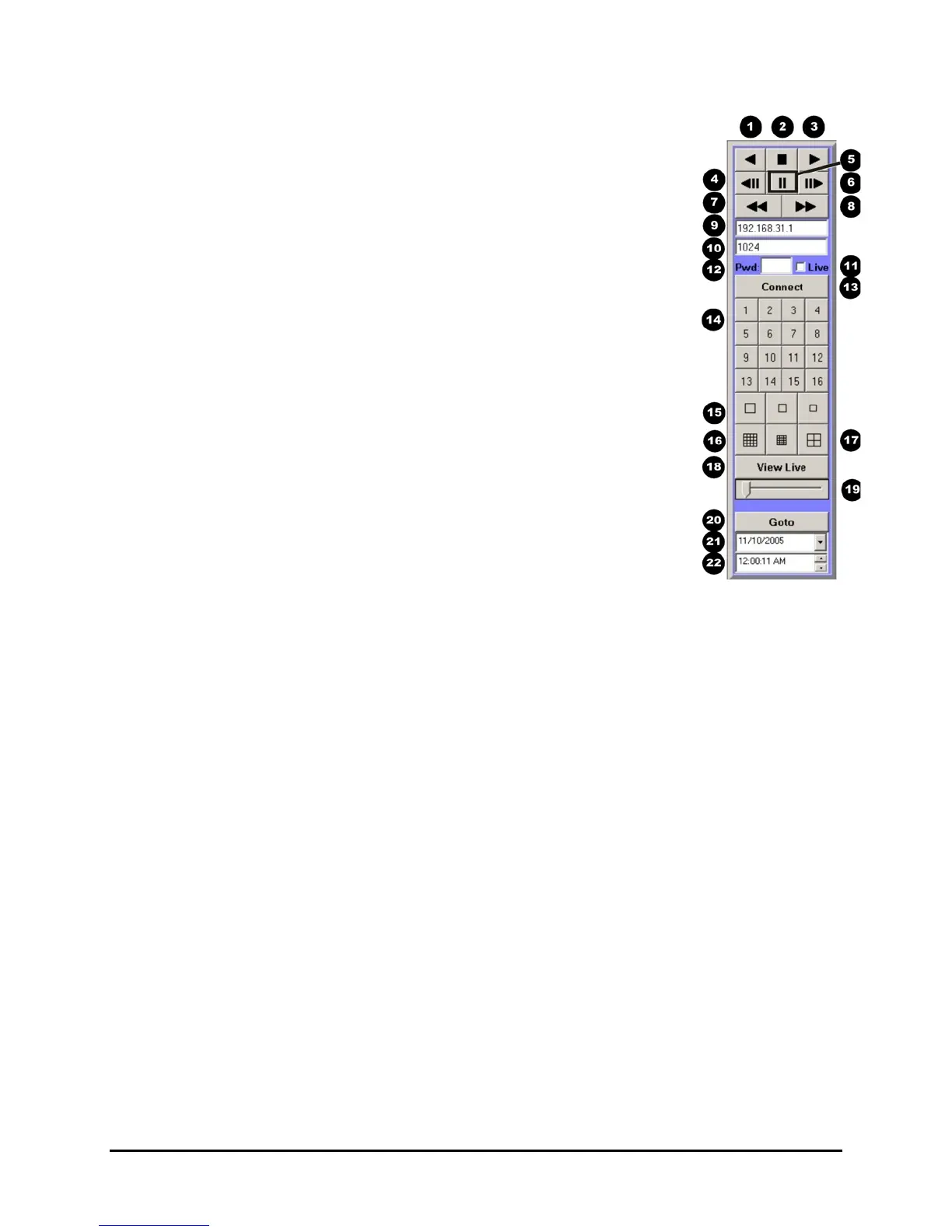18. View Live Button: Click on this button while connected to view live video.