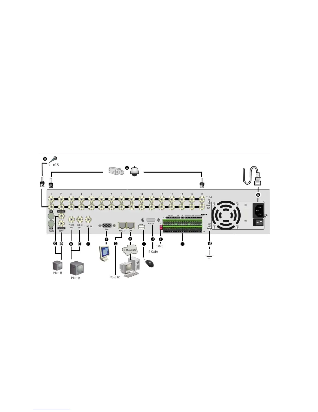 A. Connect up to 16 cameras to the standard BNC video inputs.